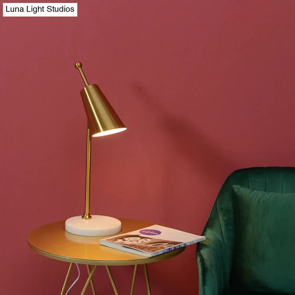 مصباح طاولة جانبي معدني ذهبي معاصر - مصباح طاولة جانبي مدبب لغرفة النوم