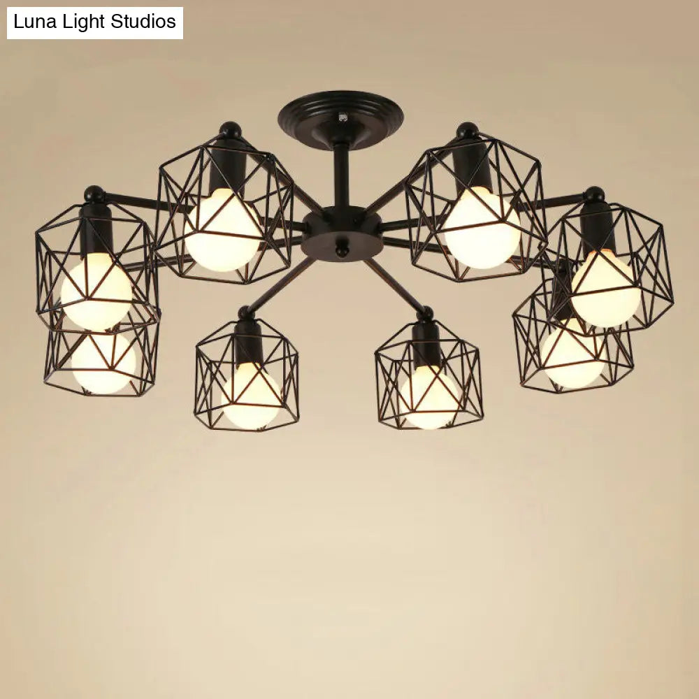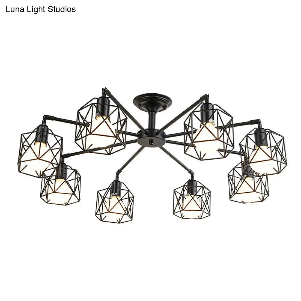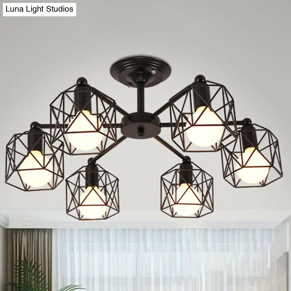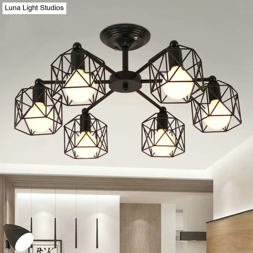 Creative Restaurant Bar Warehouse Bird Cage Explosion-proof Glass Chandelier Black