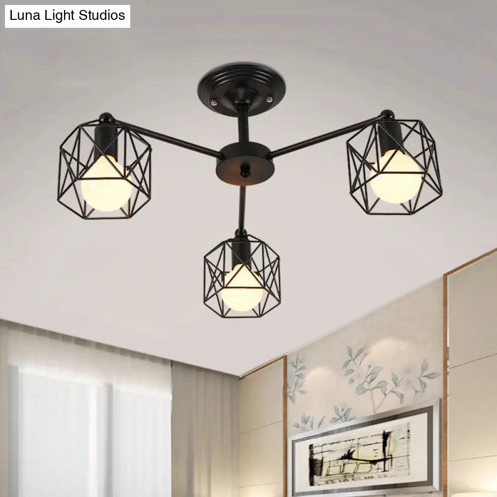 مصباح سقف سداسي الشكل من المعدن الأسود - ثريا عتيقة لغرفة المعيشة