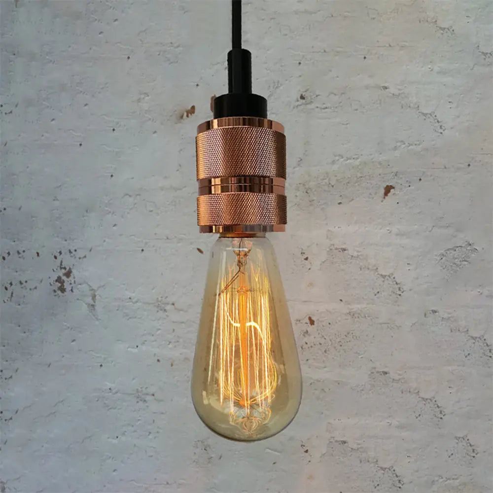 مصباح صناعي معلق من النحاس/الأسود مع سلك قابل للتعديل ومصباح مكشوف - مثالي للمطاعم
