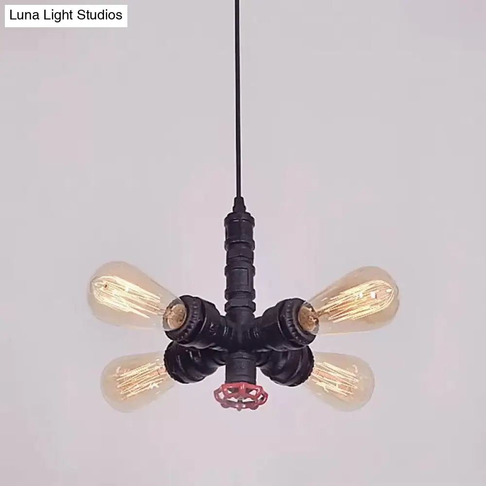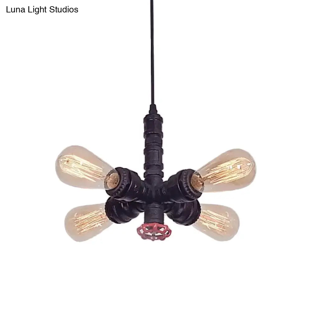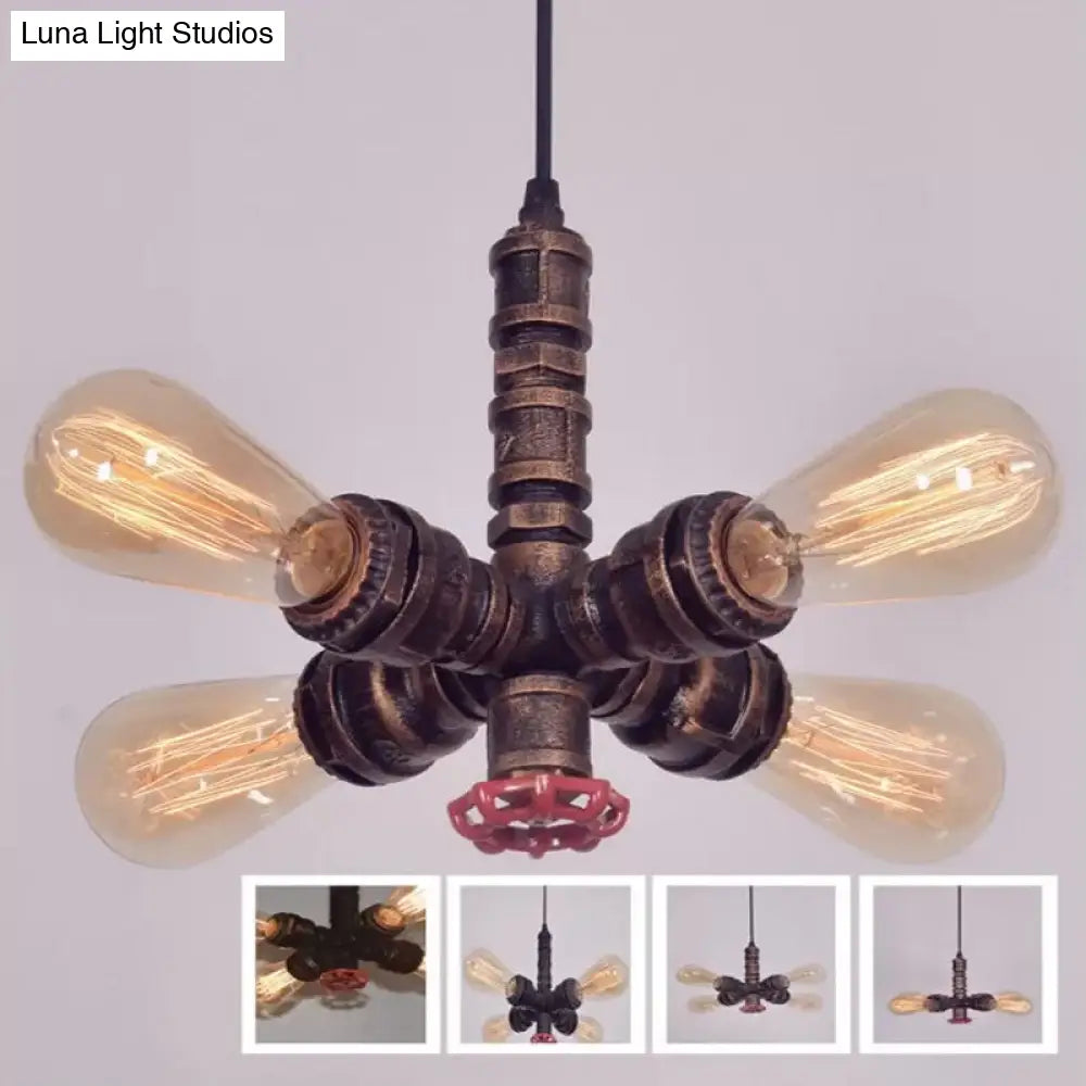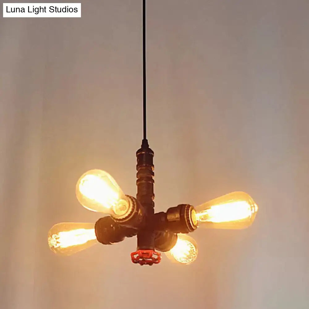 ثريا معدنية معلقة - تصميم شعاعي بأربعة مصابيح باللون البرونزي/الأسود - مثالية لغرفة المعيشة