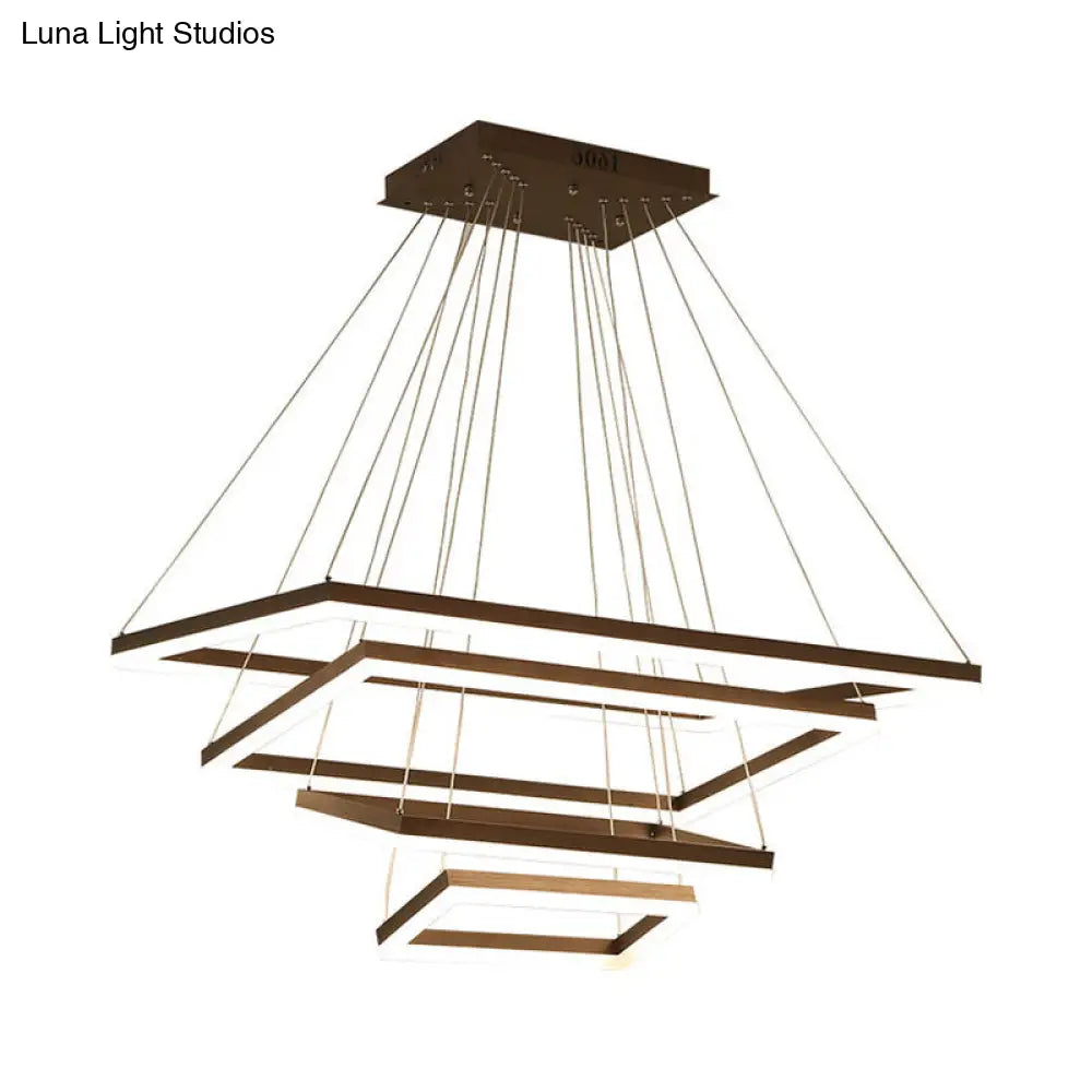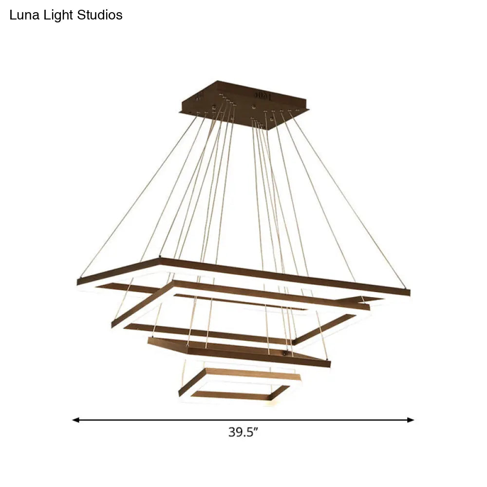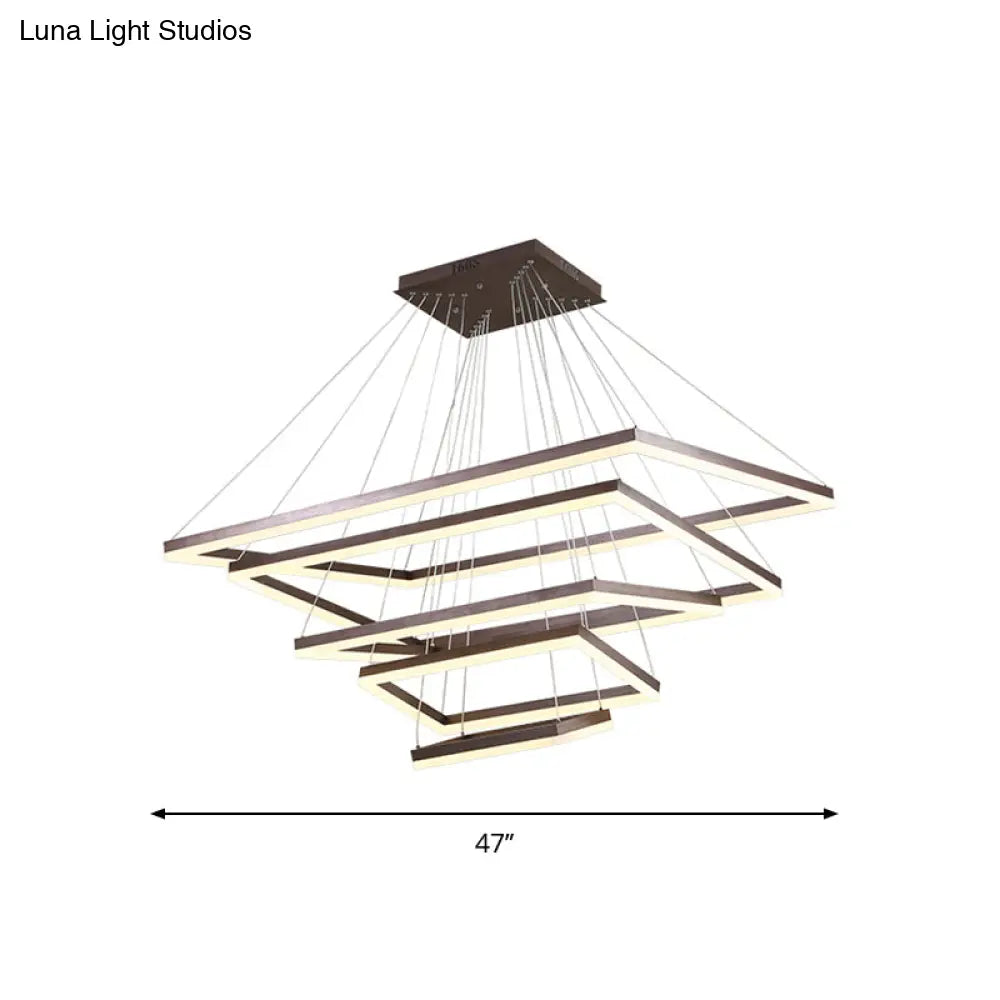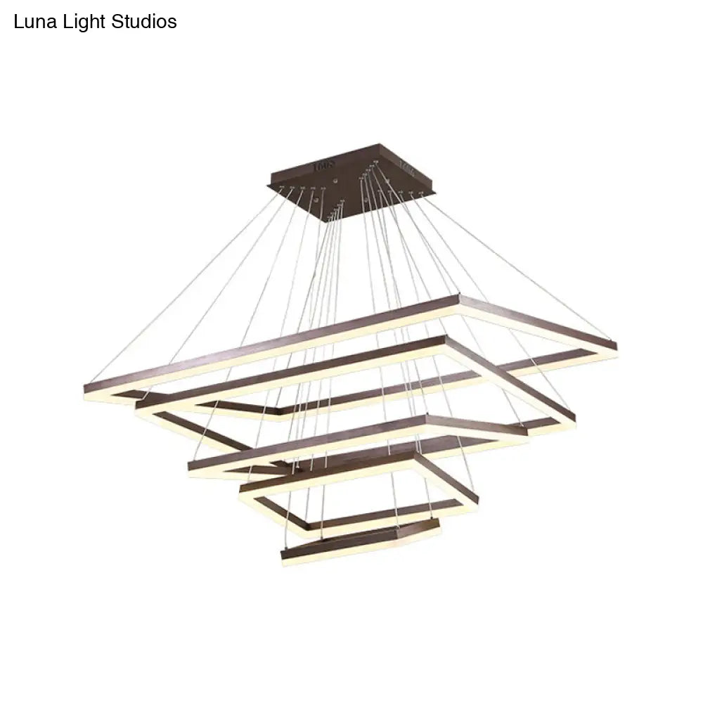 ثريا قهوة أكريليك مستطيلة معاصرة بإضاءة LED - مصباح معلق بثلاثة أو أربعة أو خمسة طبقات