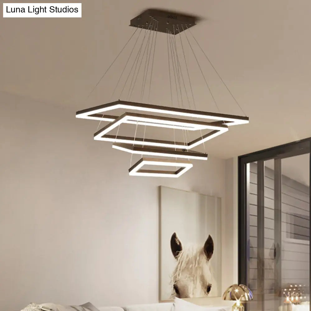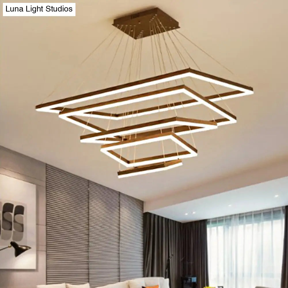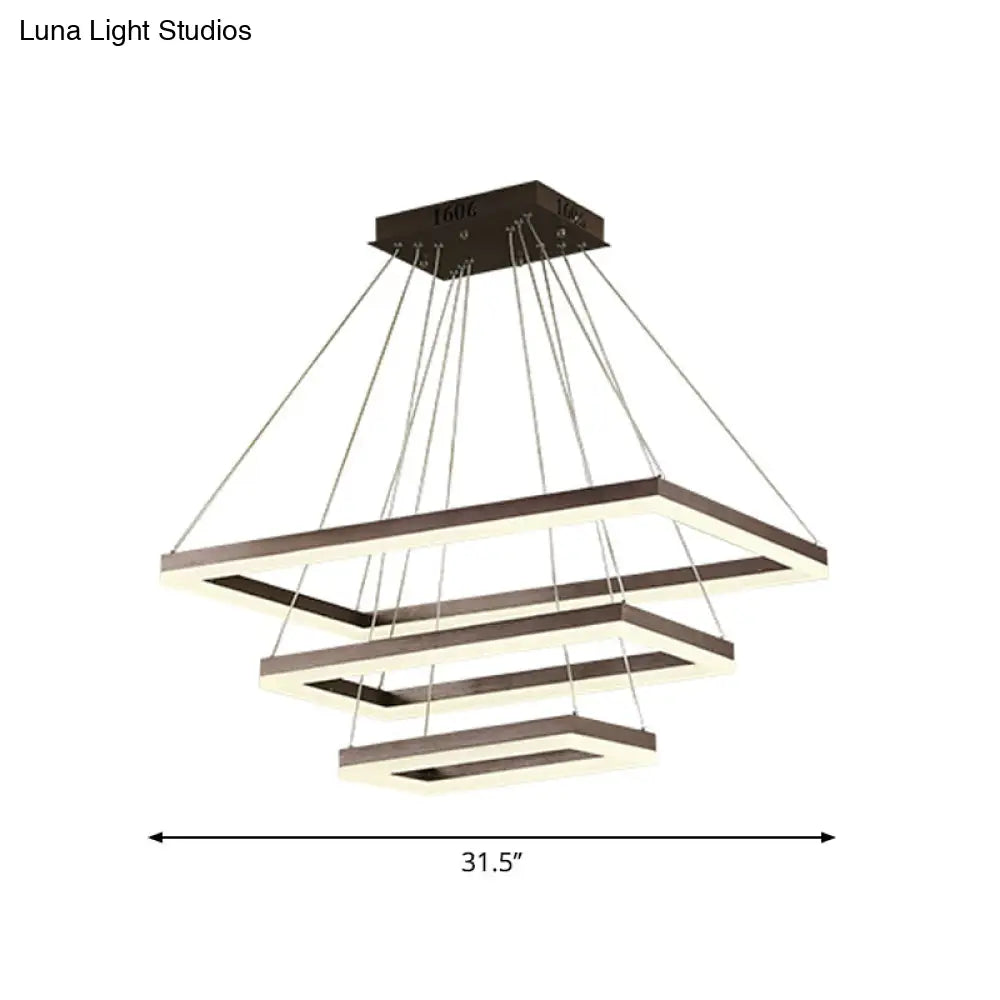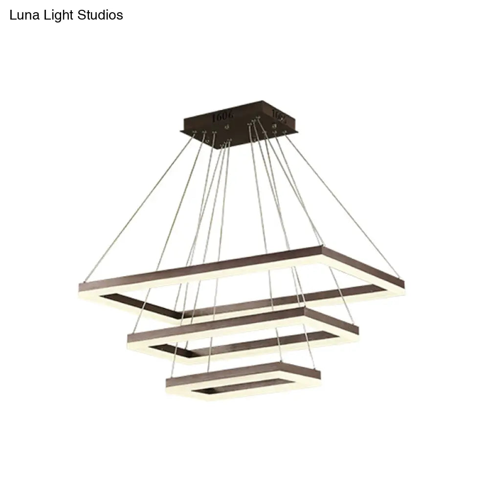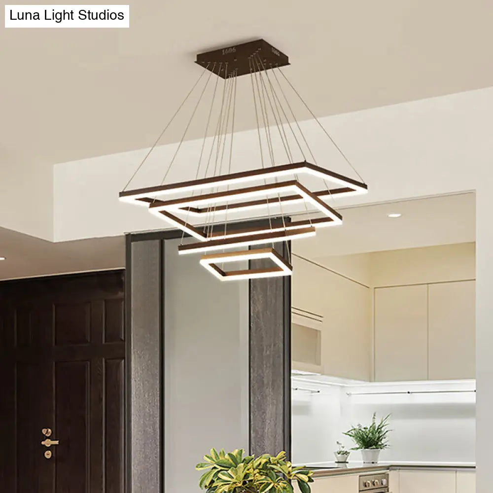 ثريا قهوة أكريليك مستطيلة معاصرة بإضاءة LED - مصباح معلق بثلاثة أو أربعة أو خمسة طبقات