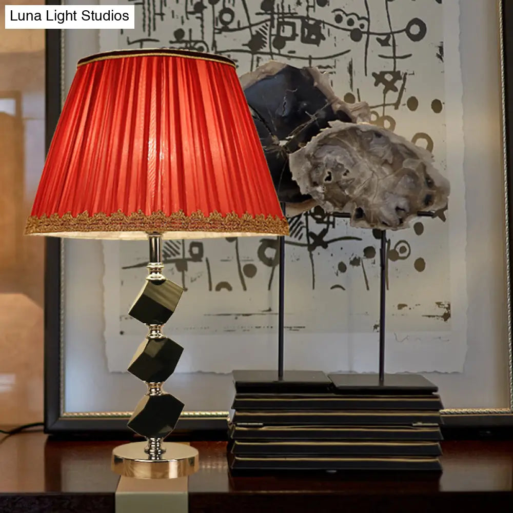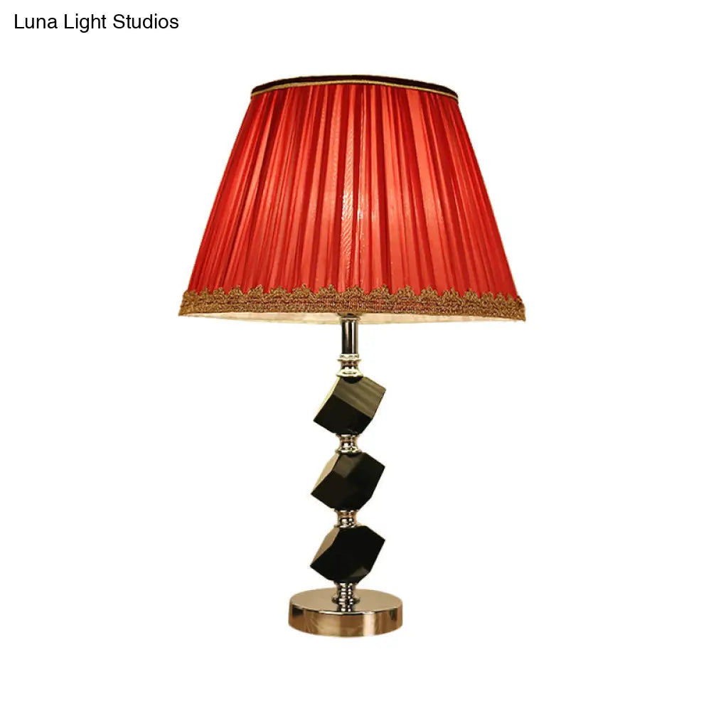 مصباح طاولة معاصر أحمر/أخضر مع إضاءة بجانب السرير من الكريستال المشطوف وحواف مضفرة