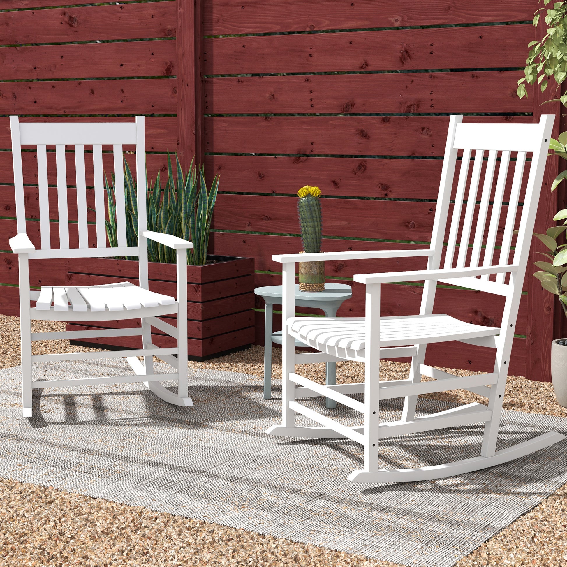 Bring timeless charm to your indoor or outdoor space with a rustic Outsunny wooden porch rocker. The natural poplar wood has a sleek polyurethane finish, allowing it elegance and protection from water. Swing smoothly, back and forth, soaking in the breeze from the comfort of your porch. A wooden rocking chairs are traditional staple of any porch, offering an easy source of relaxation. The slats make it breathable so that you can keep cool outside in the summer. Get out, get comfy, get Outsunny. Features: - Set of 2 rocking chairs - Constructed of hardwood (poplar wood) - Wide seat and smooth armrest for comfort - Slatted seat and backrest to let the breeze through - Pre-painted with polyurethane to provide protection from sun and water - Assembly Required Specification: - Color: White - Materials: Poplar - Overall Dimensions: 27.25" W x 33.75" D x 45.25" H - Seat Height: 18.75" H - Seat Width: 20.5" W - Seat Depth: 21.25" D - Maximum Armrest Width: 3.25" W - Armrest Height: 27" H - Weight Capacity: 352 lbs. - Item Label: 84G-339V00WT Package Includes: - 2 x Rocking Chair - 1 x Manual Bring timeless charm to your indoor or outdoor space with a rustic Outsunny wooden porch rocker. Features: - Set of 2 rocking chairs - Constructed of hardwood (poplar wood) - Wide seat and smooth armrest for comfort - Slatted seat and backrest to let the breeze through - Pre-painted with polyurethane to provide protection from sun and water - Assembly Required Specification: - Color: Red - Materials: Poplar - Overall Dimensions: 27.25" W x 33.75" D x 43.25" H - Seat Height: 18.75" H - Seat Width: 20.5" W - Seat Depth: 21.25" D - Maximum Armrest Width: 3.25" W - Armrest Height: 27" H - Weight Capacity: 352 lbs. - Item Label: 84G-339V00WR Package Includes: - 2 x Rocking Chair - 1 x Manual Bring timeless charm to your indoor or outdoor space with a rustic Outsunny wooden porch rocker. Features: - Set of 2 rocking chairs - Constructed of hardwood (poplar wood) - Wide seat and smooth armrest for comfort - Slatted seat and backrest to let the breeze through - Pre-painted with polyurethane to provide protection from sun and water - Assembly Required Specification: - Color: Teak - Materials: Poplar - Overall Dimensions: 27.25" W x 33.75" D x 45.25" H - Seat Height: 18.75" H - Seat Width: 20.5" W - Seat Depth: 21.25" D - Maximum Armrest Width: 3.25" W - Armrest Height: 27" H - Weight Capacity: 352 lbs. - Item Label: 84G-339V00TK Package Includes: - 2 x Rocking Chair - 1 x Manual.
