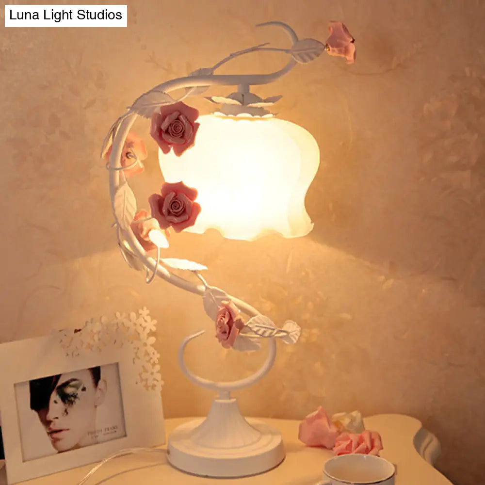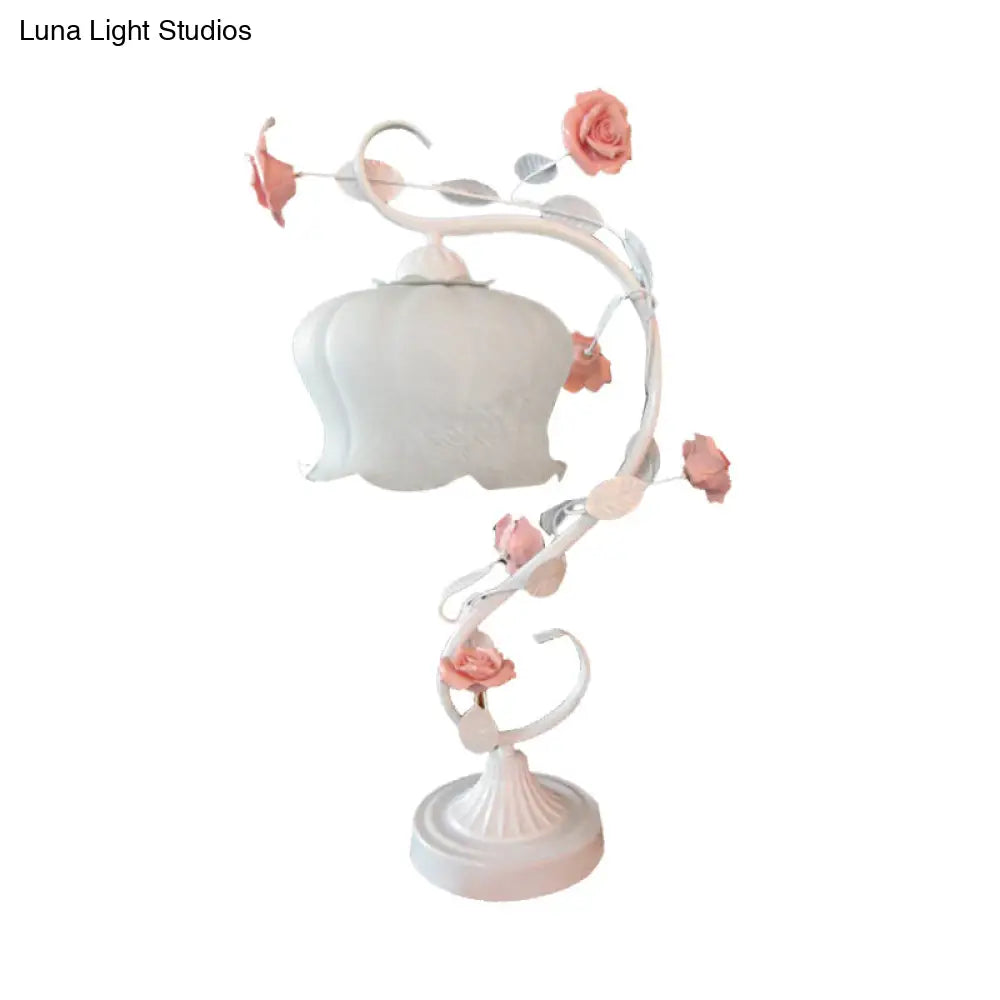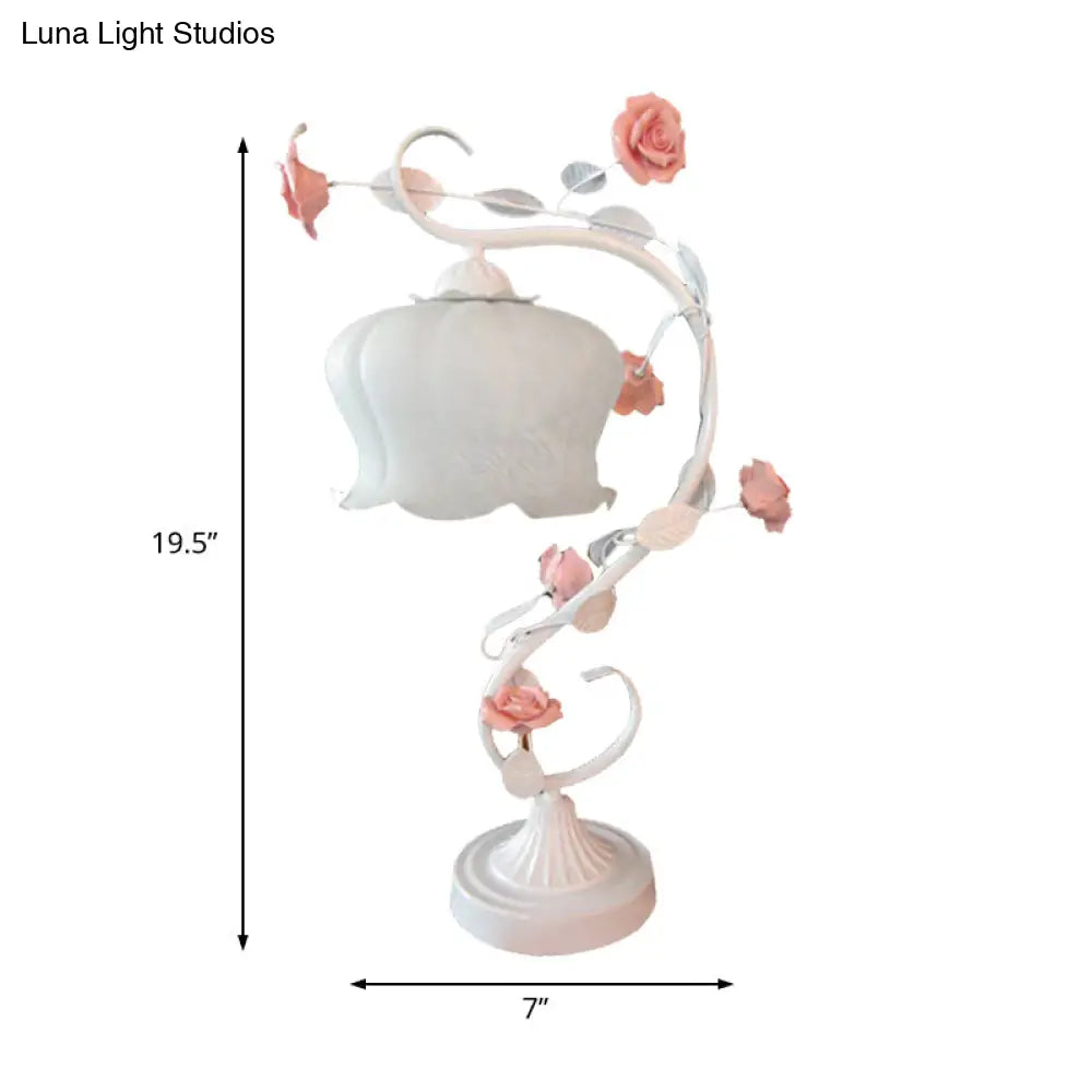 مصباح طاولة زجاجي أبيض متعرج على الطراز الريفي مع مصباح طاولة ليلية LED