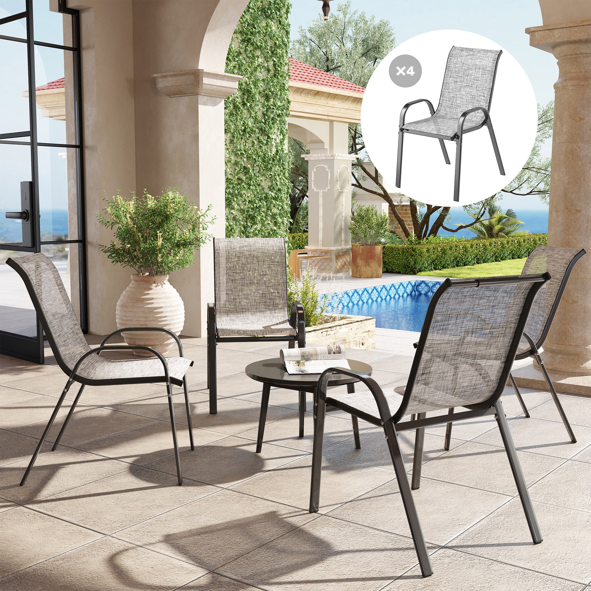 Upgrade your outdoor meals with Outsunny's stylish stacking dining chairs set. Each outdoor dining chair features a breathable mesh fabric seat, sloping high back, and supportive curved armrests, offering exceptional comfort for long and leisurely dining sessions. Designed for easy stacking, they save space when not in use. A practical and space-efficient addition to your garden, patio, deck, or lawn!. Features: - Set of four outdoor chairs enhances dining experiences - Stackable design conserves space when not in use - Breathable mesh fabric provides cool, breathable seating - Curved arms and sloping high back support relaxed posture - Steel frame with powder coating offers durability - Protective foot pads prevent floor damage - Easy assembly required Specification: - Color: Black, Dark Brown - Material: Steel, Breathable Mesh Fabric - Overall Dimension: 21.3" W x 28" D x 36.6" H - Stackable Size: 21.3" W x 29.5" D x 40.9" H - Seat Size: 17.5" W x 17.7" D - Seat Height: 16.9" - Back Size: 17.5" W x 22.8" H - Armrest to Floor Height: 23.6" - Weight Capacity: 265 lbs. - Item Label: 84G-668V01DR Package Includes: - 4 x Outdoor Dining Chair - 1 x Manual Upgrade your outdoor meals with Outsunny's stylish stacking dining chairs set. Features: - Set of four outdoor chairs enhances dining experiences - Stackable design conserves space when not in use - Breathable mesh fabric provides cool, breathable seating - Curved arms and sloping high back support relaxed posture - Steel frame with powder coating offers durability - Protective foot pads prevent floor damage - Easy assembly required Specification: - Color: Black, Mixed Gray - Material: Steel, Breathable Mesh Fabric - Overall Dimension: 21.3" W x 28" D x 36.6" H - Stackable Size: 21.3" W x 29.5" D x 40.9" H - Seat Size: 17.5" W x 17.7" D - Seat Height: 16.9" - Back Size: 17.5" W x 22.8" H - Armrest to Floor Height: 23.6" - Weight Capacity: 265 lbs. - Item Label: 84G-668V01GY Package Includes: - 4 x Outdoor Dining Chair - 1 x Manual Upgrade your outdoor meals with Outsunny's stylish stacking dining chairs set. Features: - Set of four outdoor chairs enhances dining experiences - Stackable design conserves space when not in use - Breathable mesh fabric provides cool, breathable seating - Curved arms and sloping high back support relaxed posture - Steel frame with powder coating offers durability - Protective foot pads prevent floor damage - Easy assembly required Specification: - Color: Black, Beige - Material: Steel, Breathable Mesh Fabric - Overall Dimension: 21.3" W x 28" D x 36.6" H - Stackable Size: 21.3" W x 29.5" D x 40.9" H - Seat Size: 17.5" W x 17.7" D - Seat Height: 16.9" - Back Size: 17.5" W x 22.8" H - Armrest to Floor Height: 23.6" - Weight Capacity: 265 lbs. - Item Label: 84G-668V01BG Package Includes: - 4 x Outdoor Dining Chair - 1 x Manual Transform outdoor space into a cozy haven with the Outsunny outdoor patio chairs. Designed for comfort, these balcony chairs feature a U-shaped metal frame and a contoured backrest that cradles your spine. The spacious 20.1" width ensures a snug fit for most body types, while the breathable mesh fabric keeps you cool. Great for any patio, deck, or balcony!. Features: - Two-piece set fit for patios, gardens, balconies, and decks - C spring motion gives a 15° micro-swing when you're sitting - Breathable mesh fabric is breathable and easy to maintain - Robust material is weather-resistant while keeping strong - Wide seat dimensions accommodate most body types comfortably - Armrests offer comfortable support - Assembly required Specification: - Color: Light Brown - Material: Metal, Breathable Mesh - Overall Dimensions: 23.6" W x 27.4" D x 39" H - Seat Size: 20.1" W x 18.9" D - Seat Height: 16.9" H - Armrest: 1.7" W x 21.7" D - Backrest: 24.2" L x 20.1" W - Maximum Load: 265 lbs. - Item Label: 84G-660V00LR Package Includes: - 2 x Chairs - 1 x Manual Transform outdoor space into a cozy haven with the Outsunny outdoor patio chairs. Features: - Two-piece set fit for patios, gardens, balconies, and decks - C spring motion gives a 15° micro-swing when you're sitting - Breathable mesh fabric is breathable and easy to maintain - Robust material is weather-resistant while keeping strong - Wide seat dimensions accommodate most body types comfortably - Armrests offer comfortable support - Assembly required Specification: - Color: Light Gray - Material: Metal, Breathable Mesh - Overall Dimensions: 23.6" W x 27.4" D x 39" H - Seat Size: 20.1" W x 18.9" D - Seat Height: 16.9" H - Armrest: 1.7" W x 21.7" D - Backrest: 24.2" L x 20.1" W - Maximum Load: 265 lbs. - Item Label: 84G-660V00LG Package Includes: - 2 x Chairs - 1 x Manual.