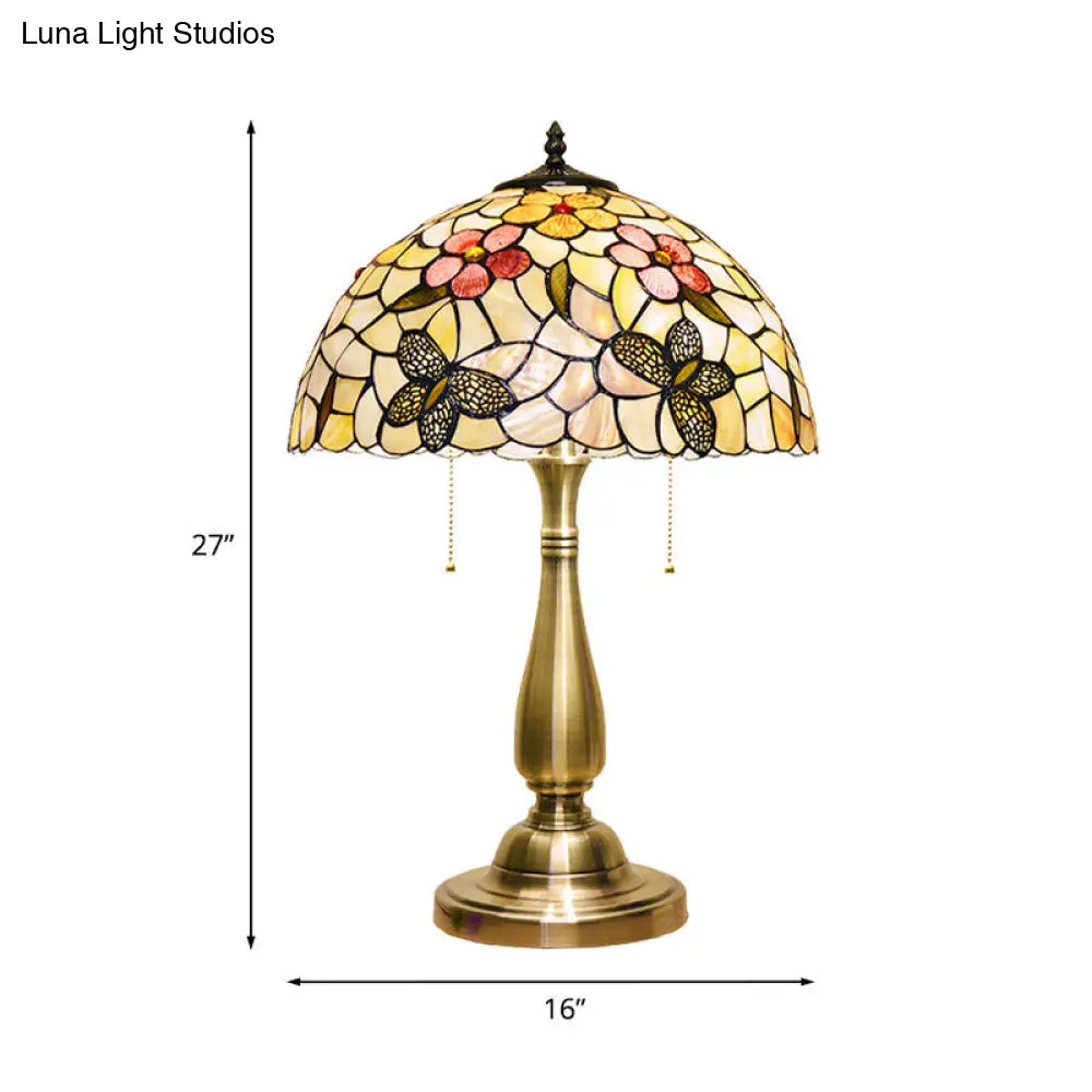 أريا - مصباح ليلي من النحاس المصقول على شكل صدفة صدفية، مزين بفراشات وزهور، مزود بإضاءة من تيفاني، مزود بسلسلة سحب