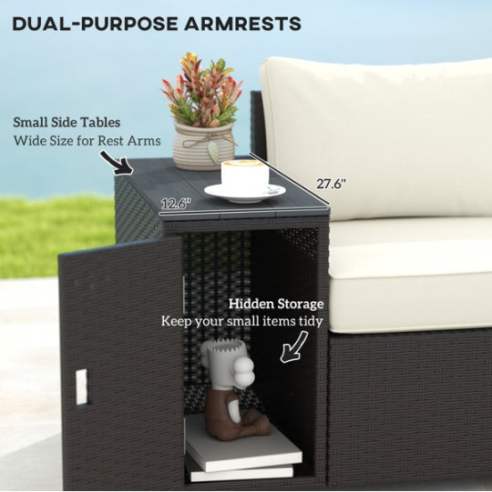 - - Hidden storage under armrests keeps small items out-of-the-way when not in use