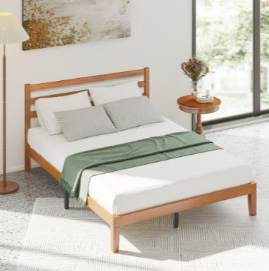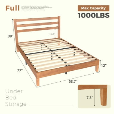 Solid Wood Bed Frame - Mattress Base With Headboard, No Spring Box Required, 1100 Pounds Of Sturdy Wooden Strips For Support