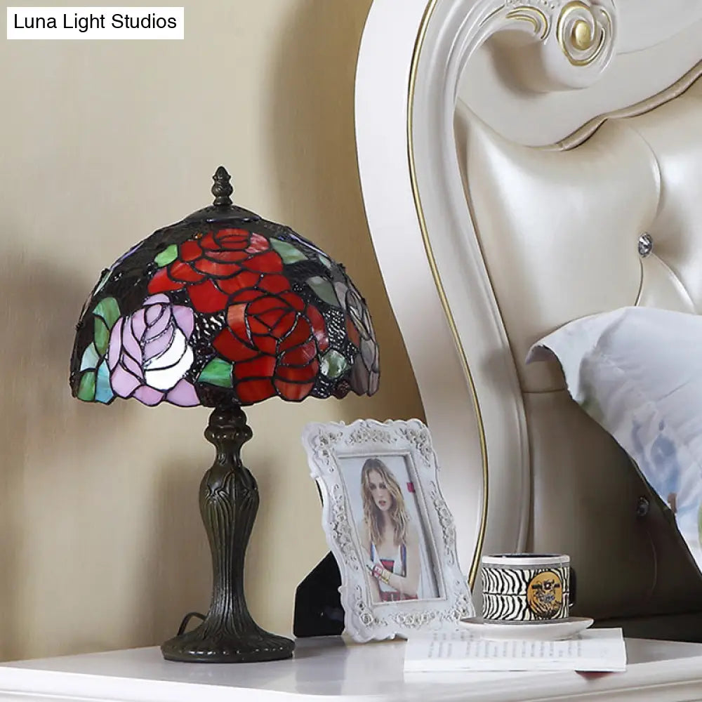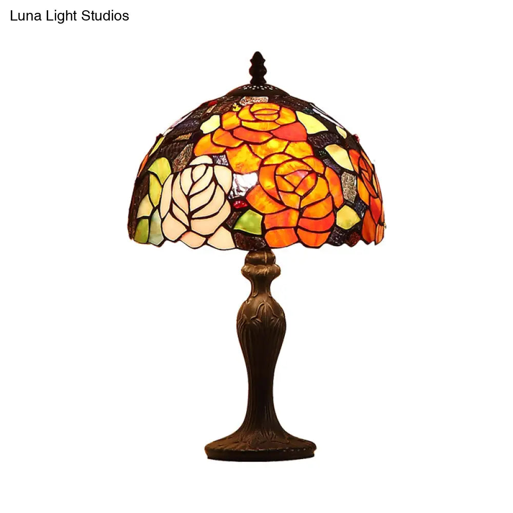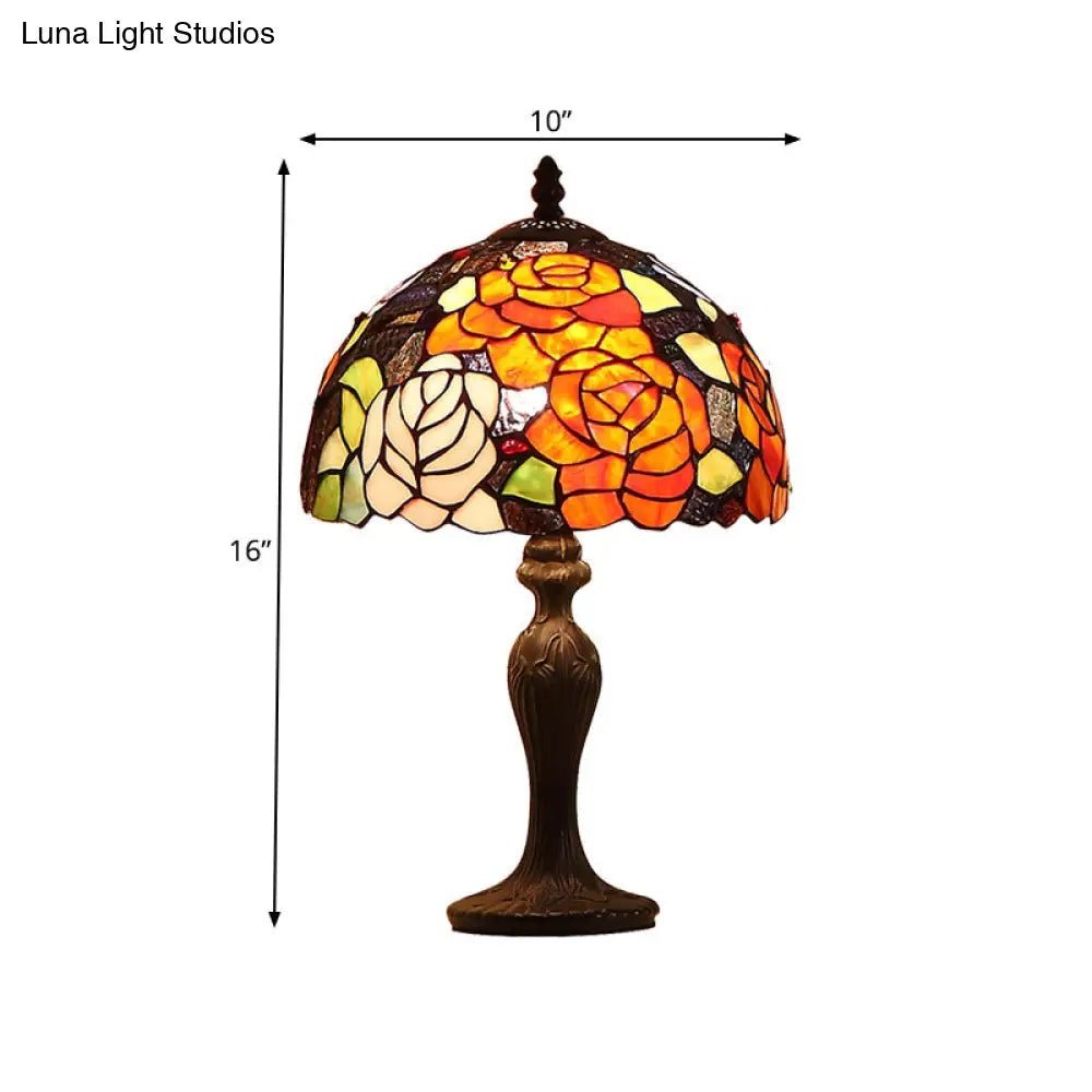 مصباح طاولة تيفاني بلوسوم من الزجاج الملون باللون البني الداكن - مصباح طاولة جانبي بضوء واحد