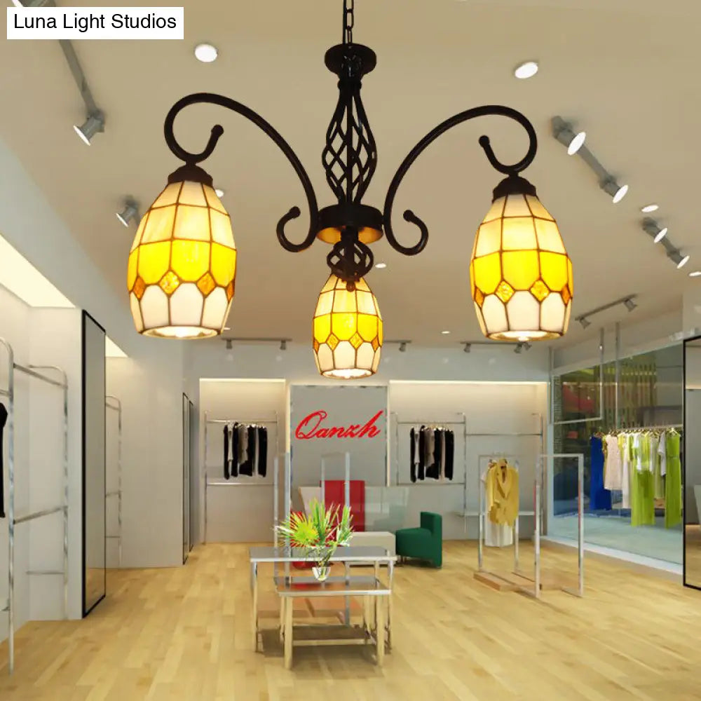 ثريا بيضاوية من الزجاج الملون باللون البني - مصباح تيفاني معلق بثلاث مصابيح لغرفة المعيشة