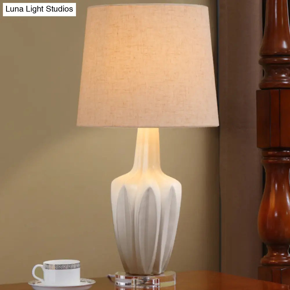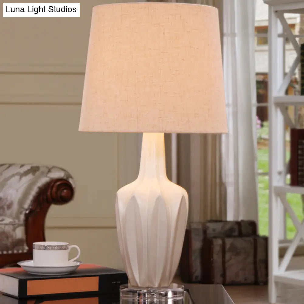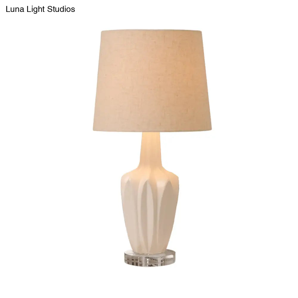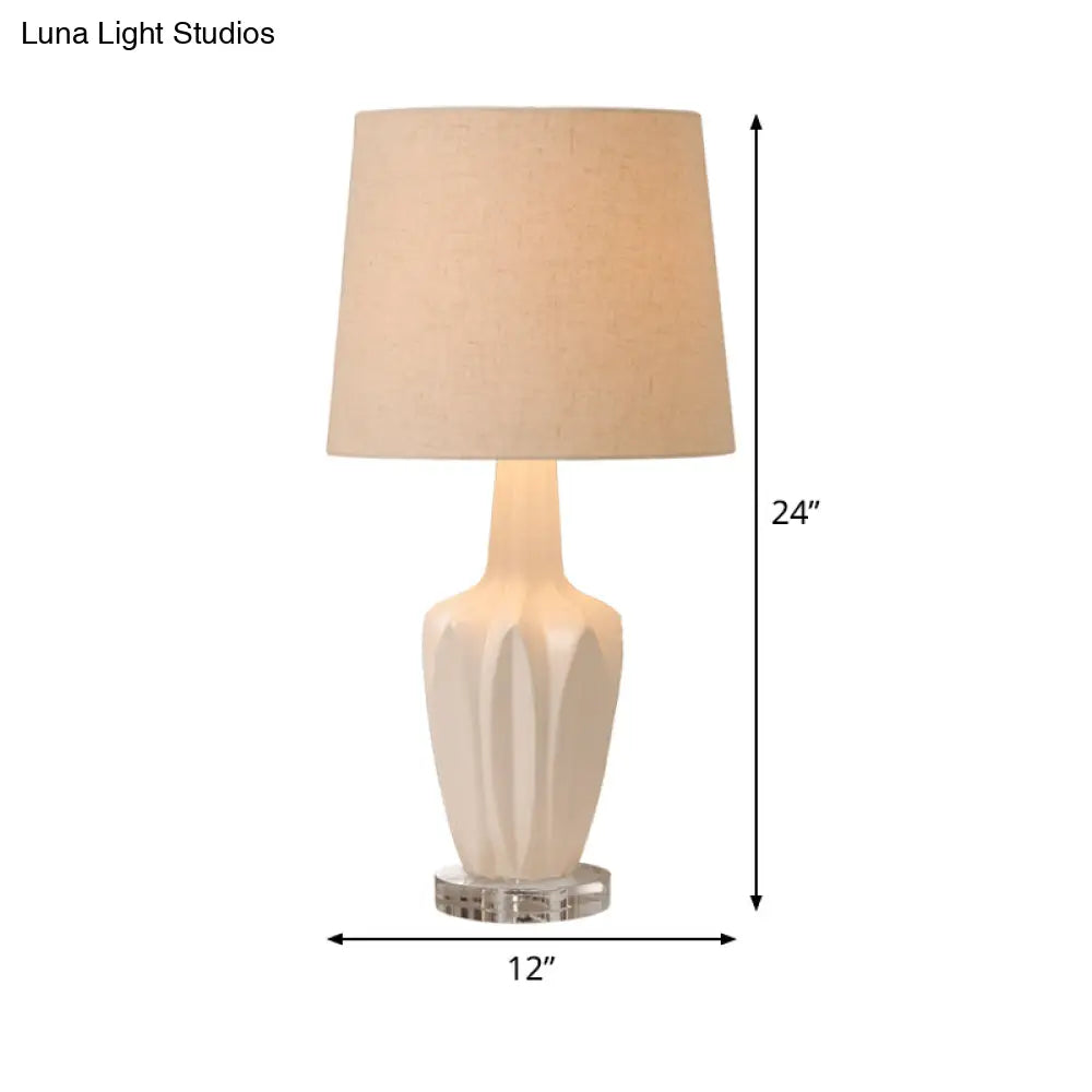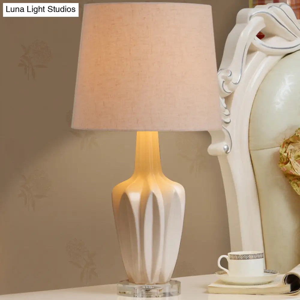 مصباح طاولة ليلية عصري على شكل أسطوانة مدببة باللون الأبيض - مصباح قراءة كتاب بمصباح واحد
