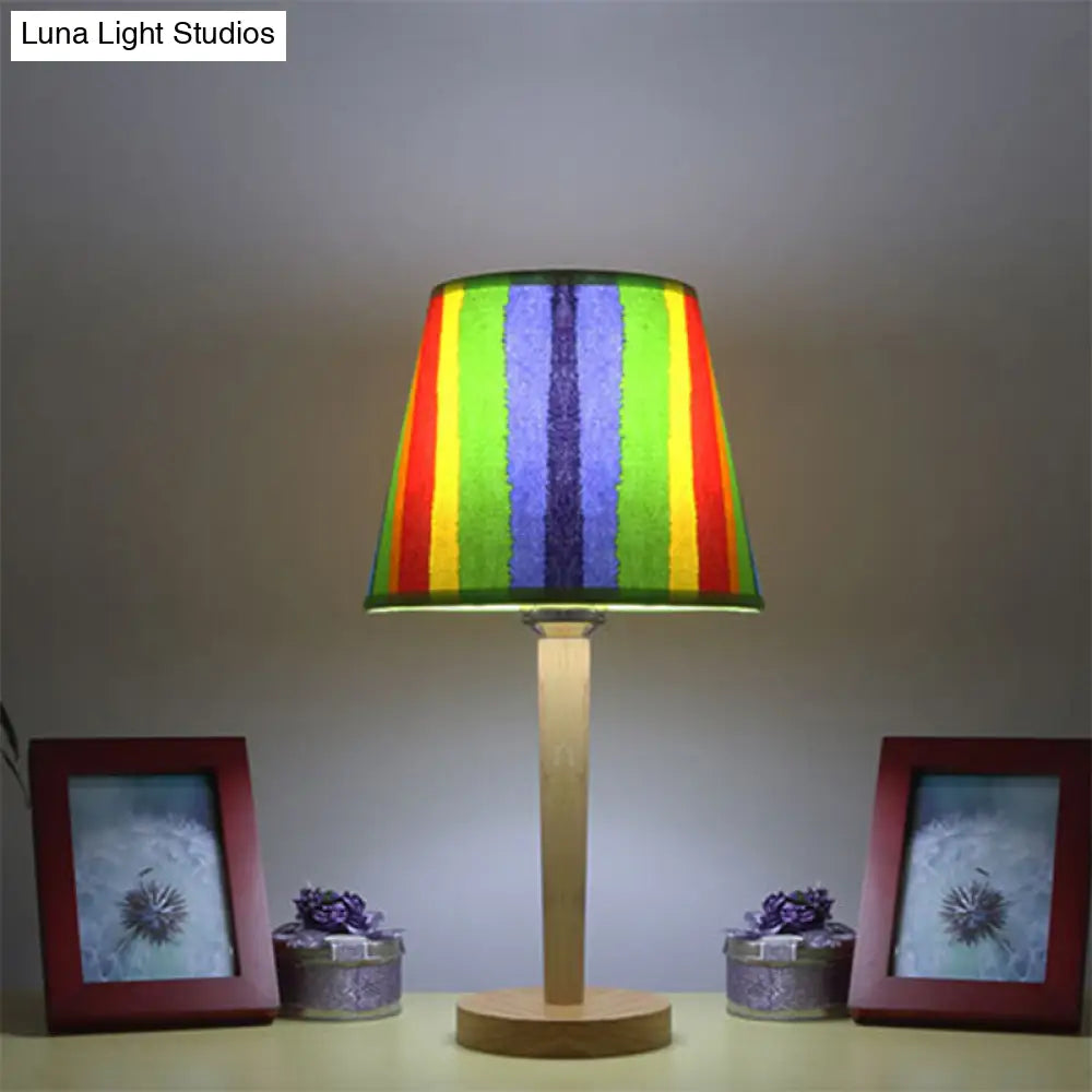 مصباح طاولة عصري مدبب برأس واحد - لمسة نهائية من الخشب الفاتح لمكتب غرفة الدراسة