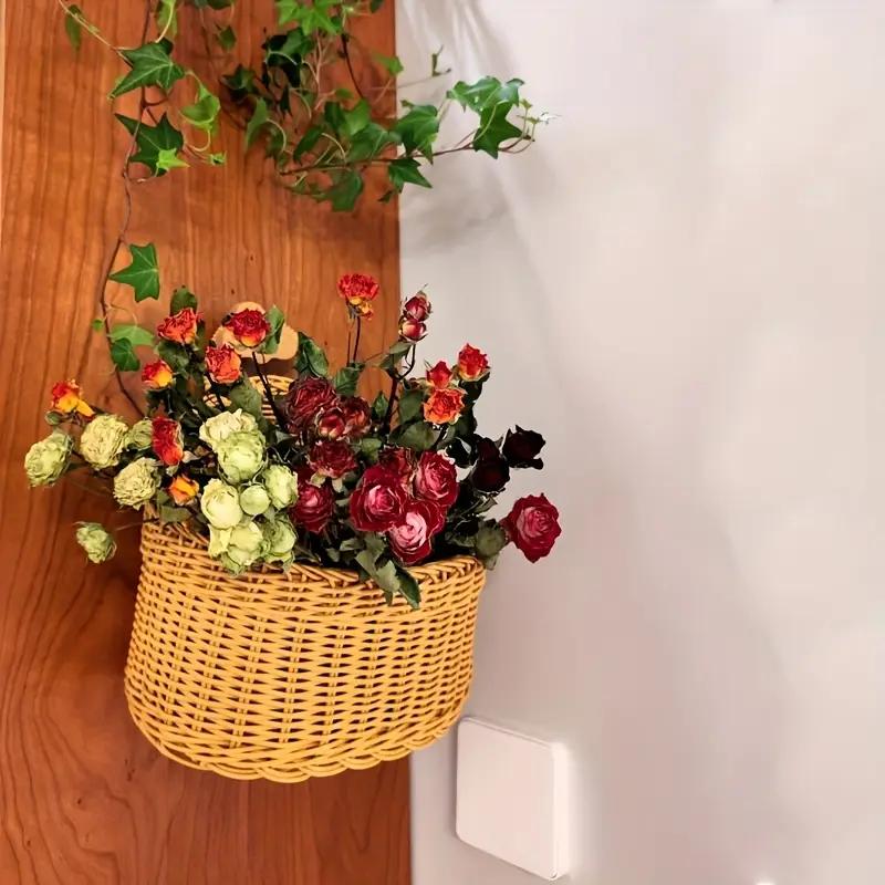 Three-piece Set Of Imitation Rattan Wall-mounted Storage Baskets And Plastic Woven Hanging Baskets