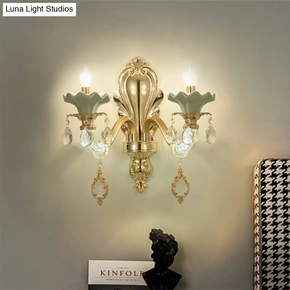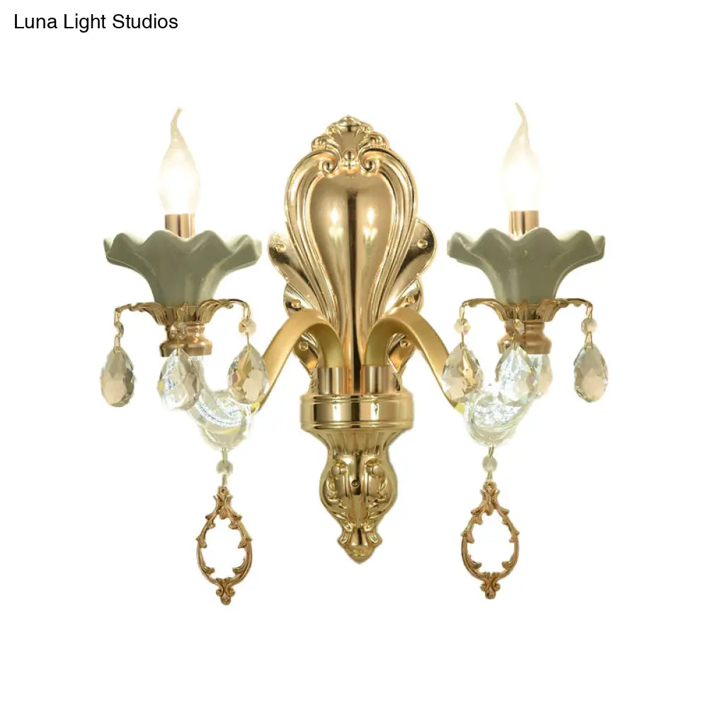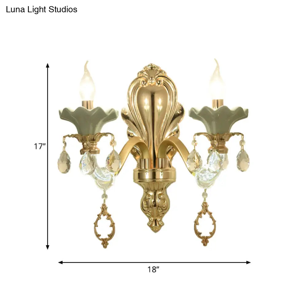 مصباح شموع كريستالي مثبت على الحائط بلمسة نهائية ذهبية أنيقة