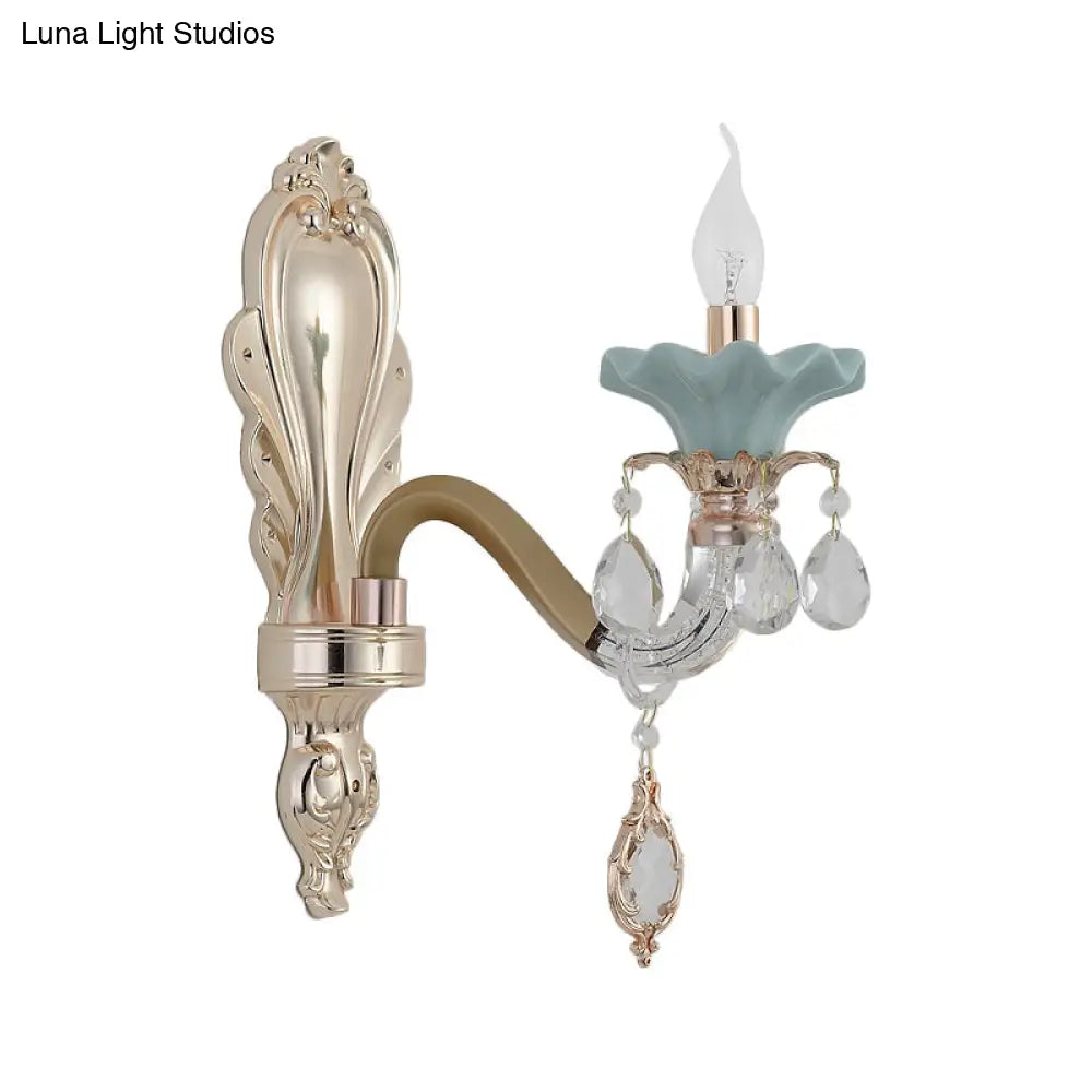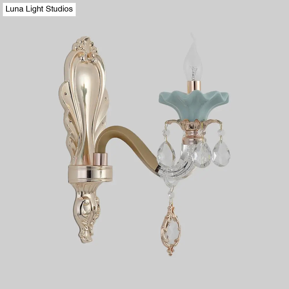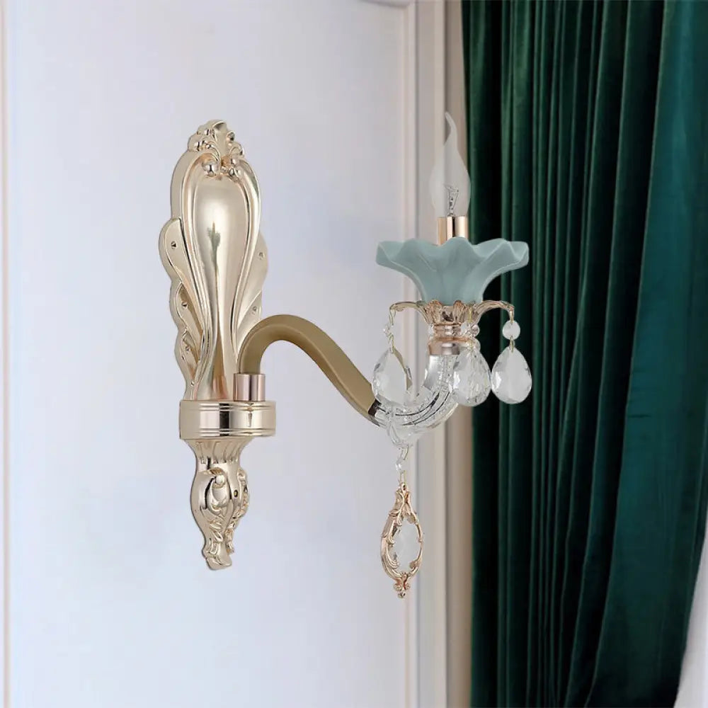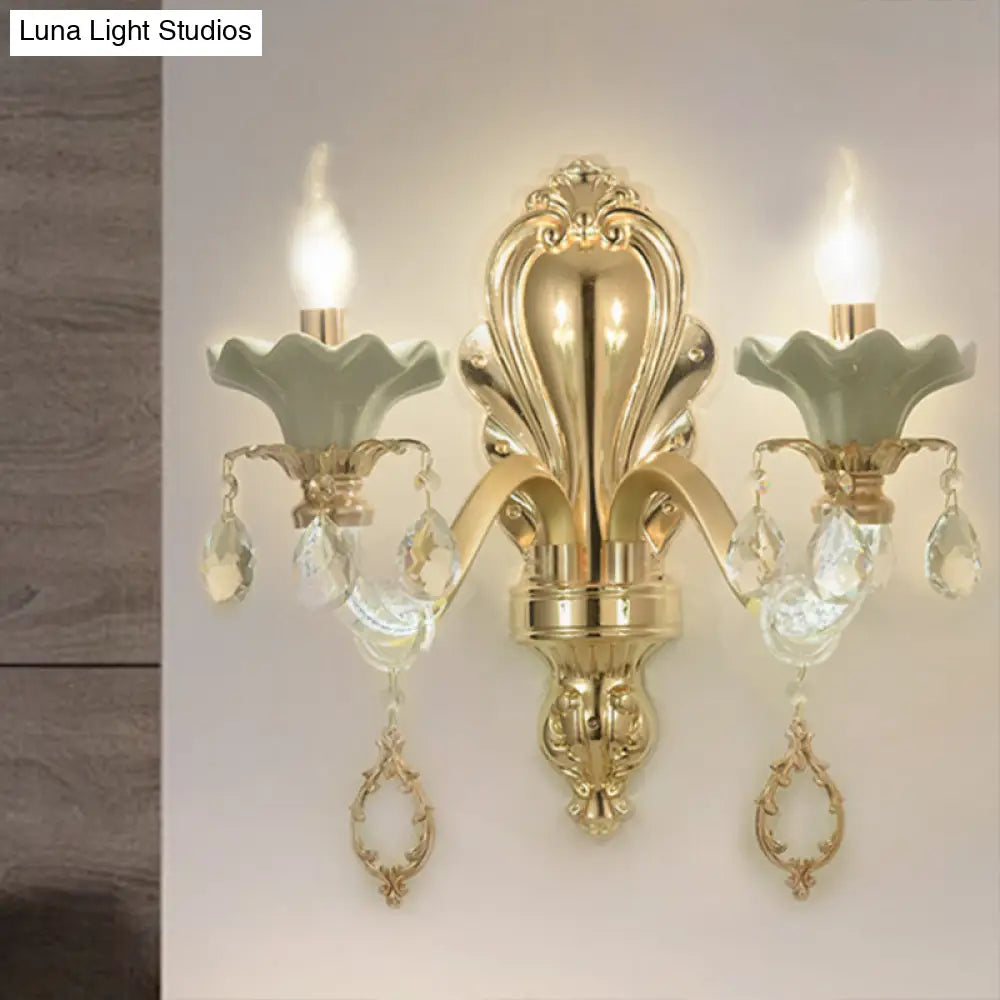 مصباح شموع كريستالي مثبت على الحائط بلمسة نهائية ذهبية أنيقة