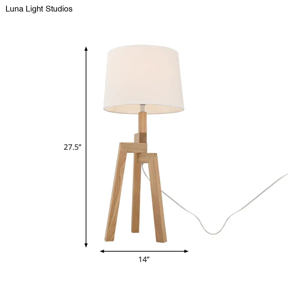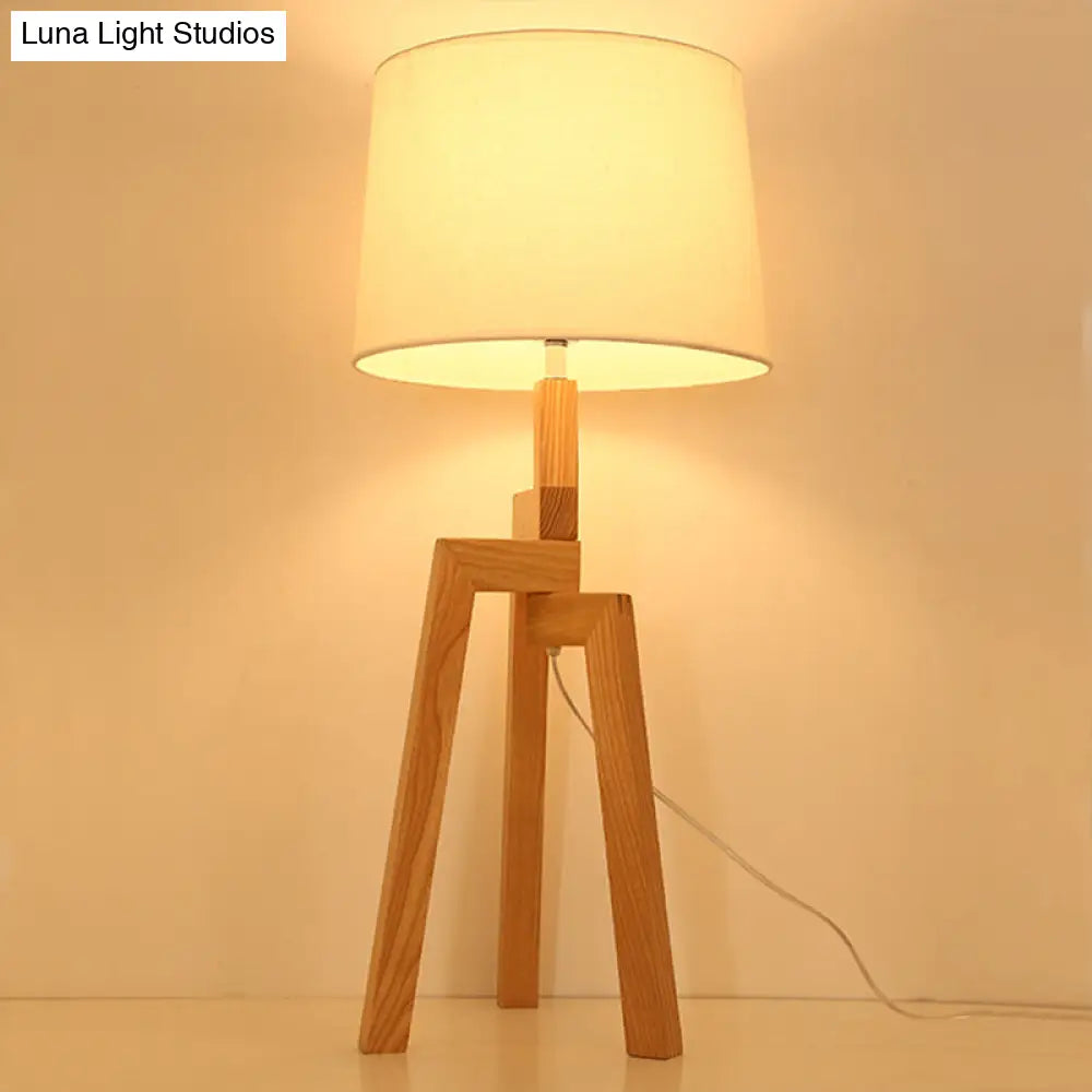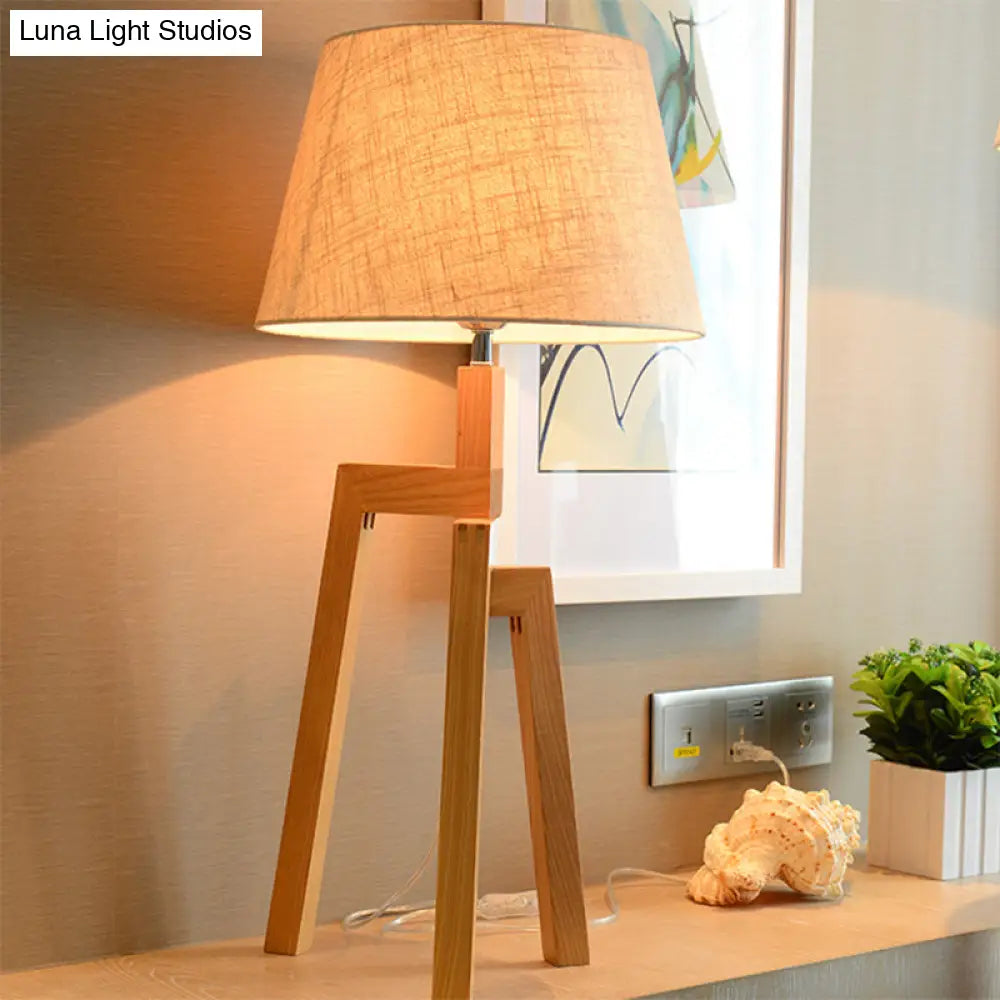 مصباح طاولة خشبي عصري بغطاء إمبراطوري بيج - تصميم ثلاثي الأرجل ومصباح واحد
