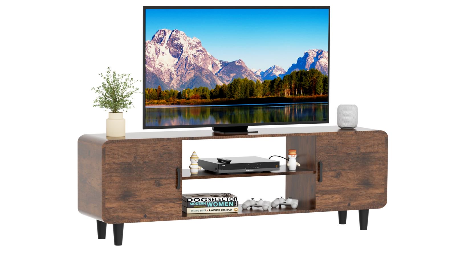【Curve Round Edge】 Designed for a child safe environment with smooth rounded corners which is easy for the eyes. Anti-collision design with rounded corners inside and outside of the cabinet, will keep you away from the pain when you accidentally touch the corner of the tv stand.