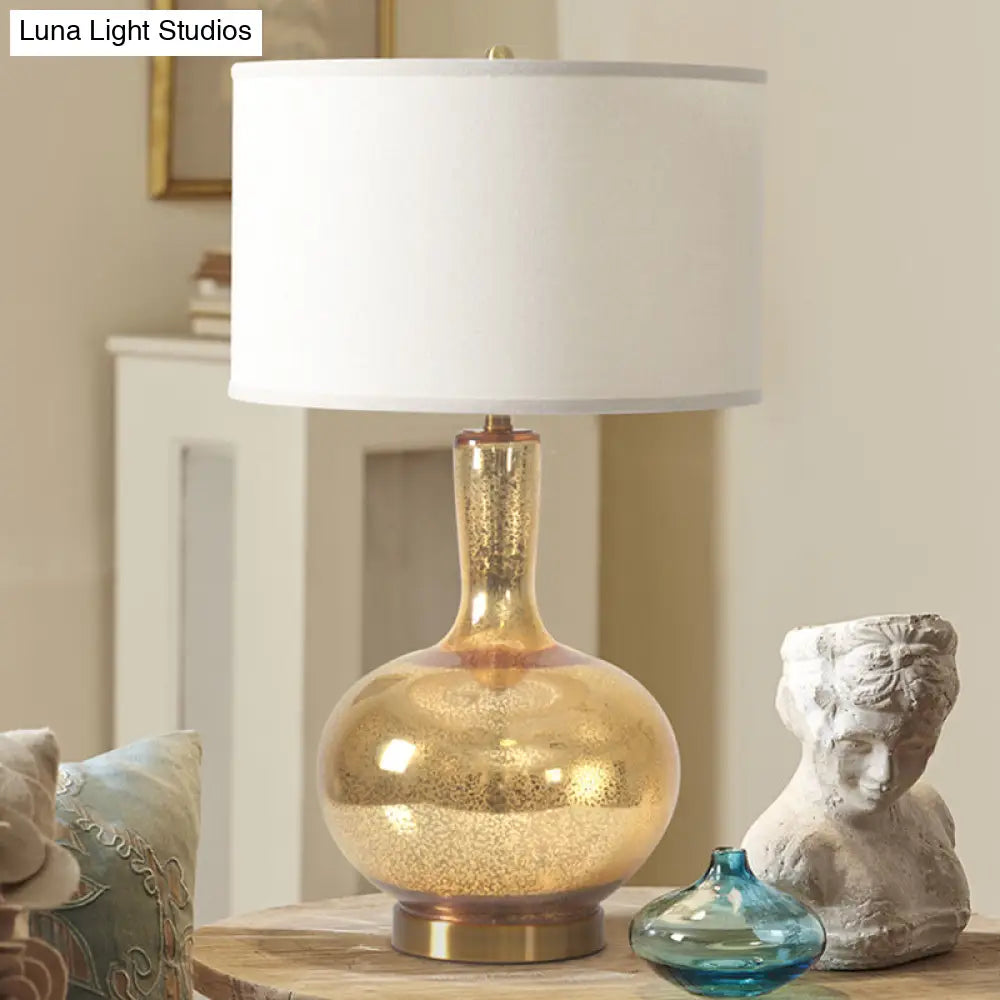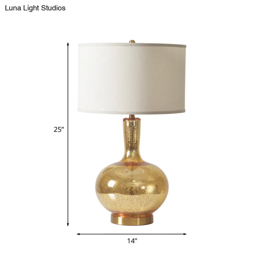 مصباح ليلي زجاجي متشقق - ذهبي على الطراز الريفي، غطاء أسطواني من القماش - إضاءة طاولة غرفة النوم بجانب السرير