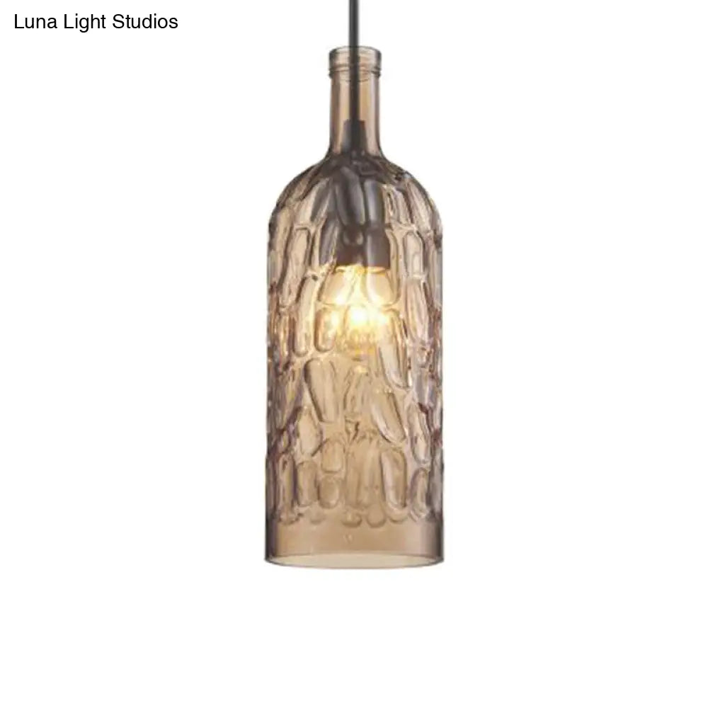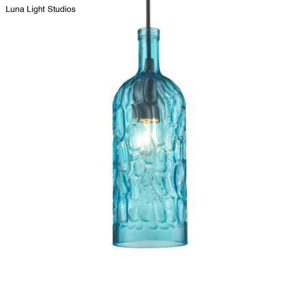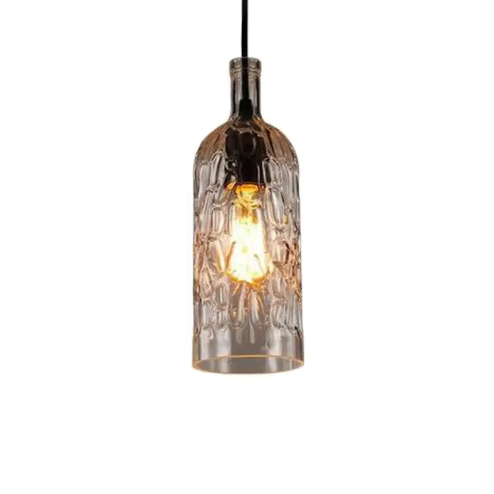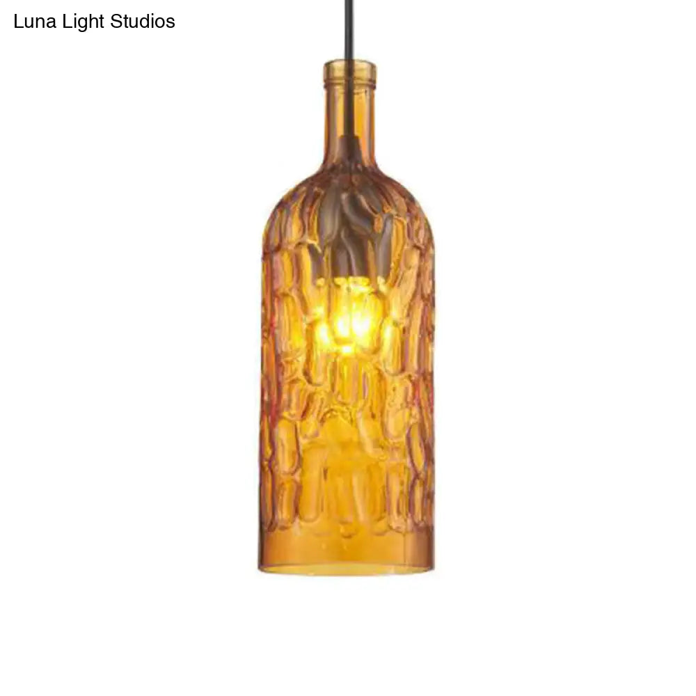 مصباح معلق على شكل زجاجة نبيذ على طراز آرت ديكو مع زجاج متموج للمطاعم والبار - مصباح معلق عتيق بإضاءة منخفضة بضوء واحد