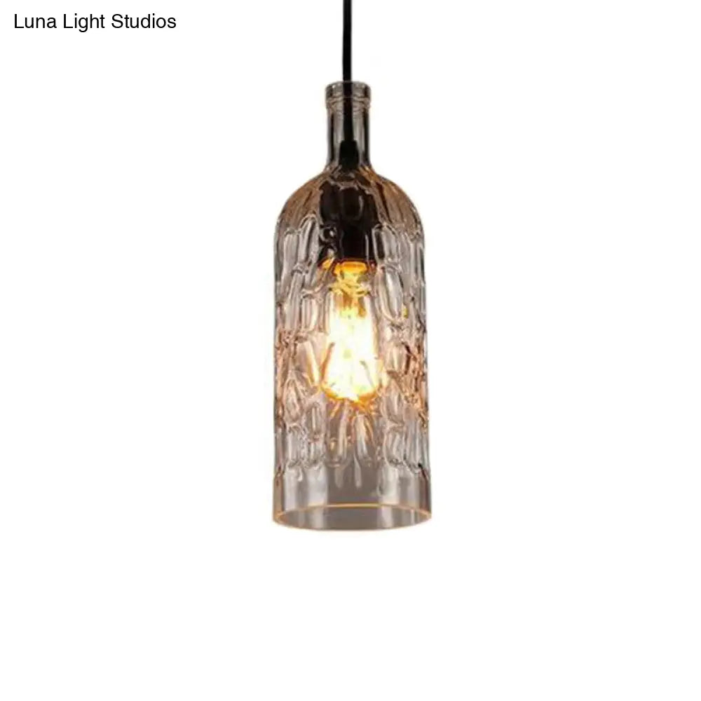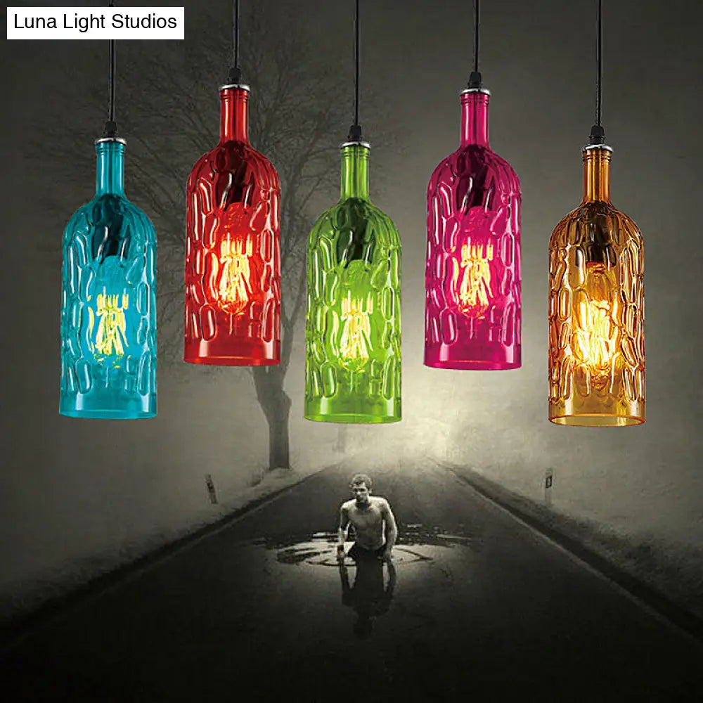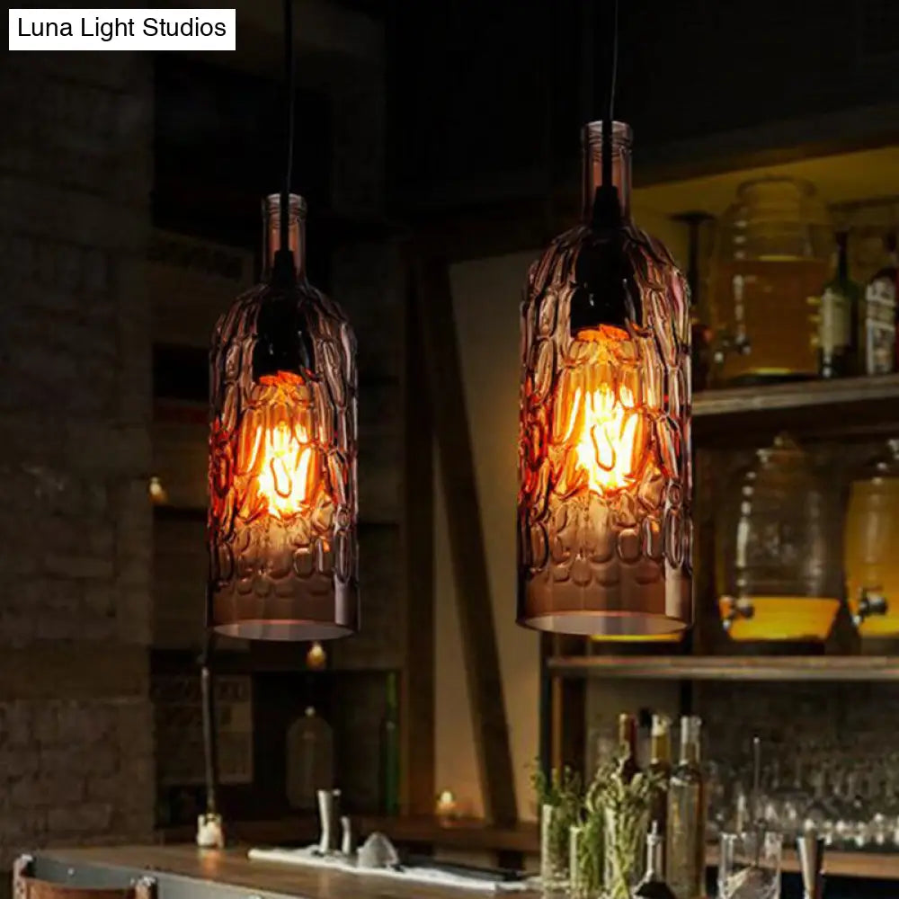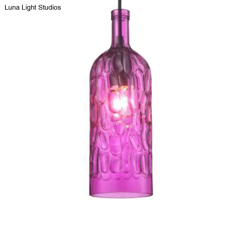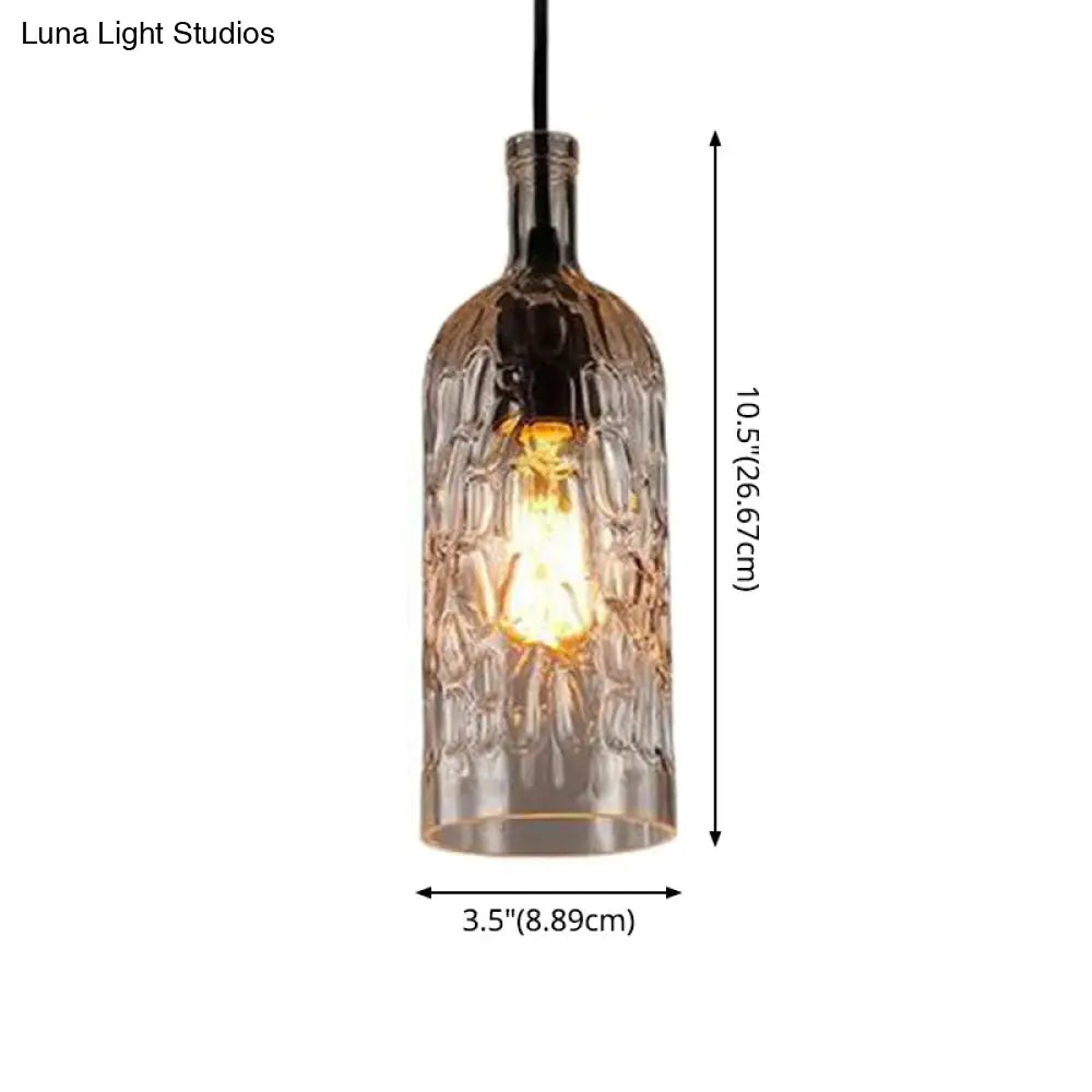 مصباح معلق على شكل زجاجة نبيذ على طراز آرت ديكو مع زجاج متموج للمطاعم والبار - مصباح معلق عتيق بإضاءة منخفضة بضوء واحد