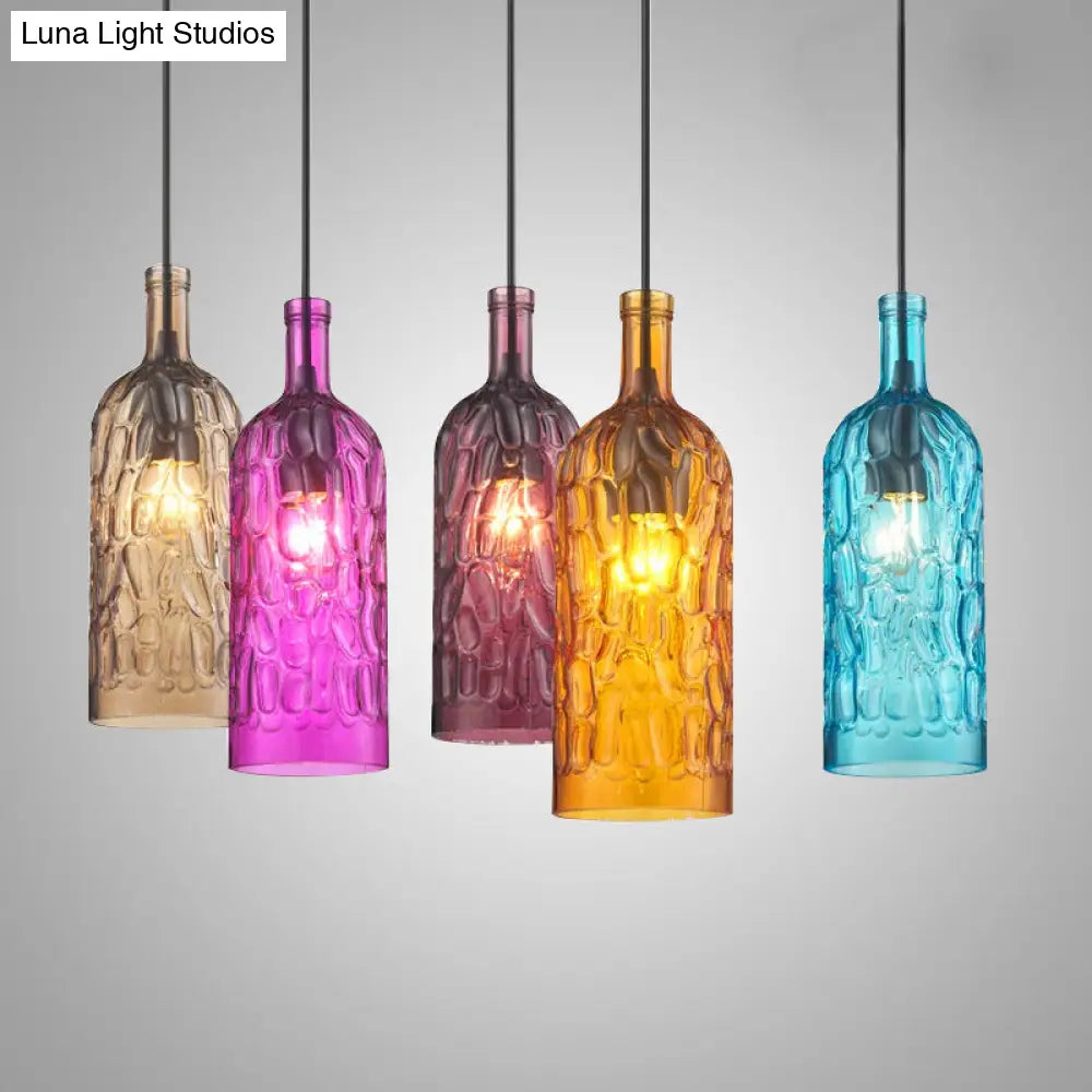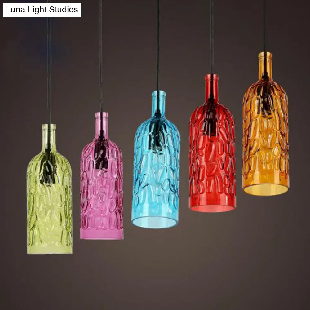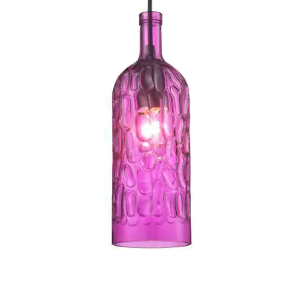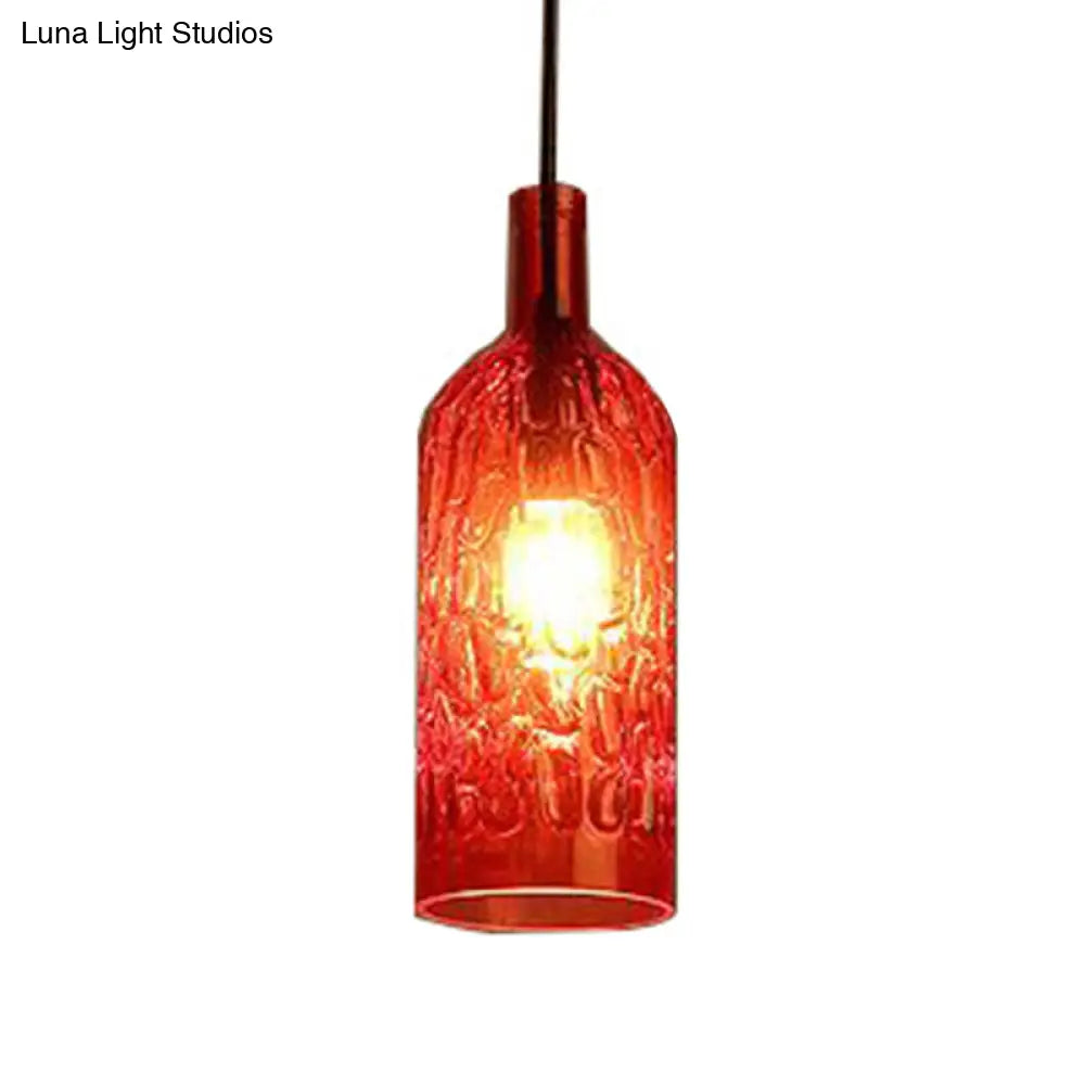 مصباح معلق على شكل زجاجة نبيذ على طراز آرت ديكو مع زجاج متموج للمطاعم والبار - مصباح معلق عتيق بإضاءة منخفضة بضوء واحد