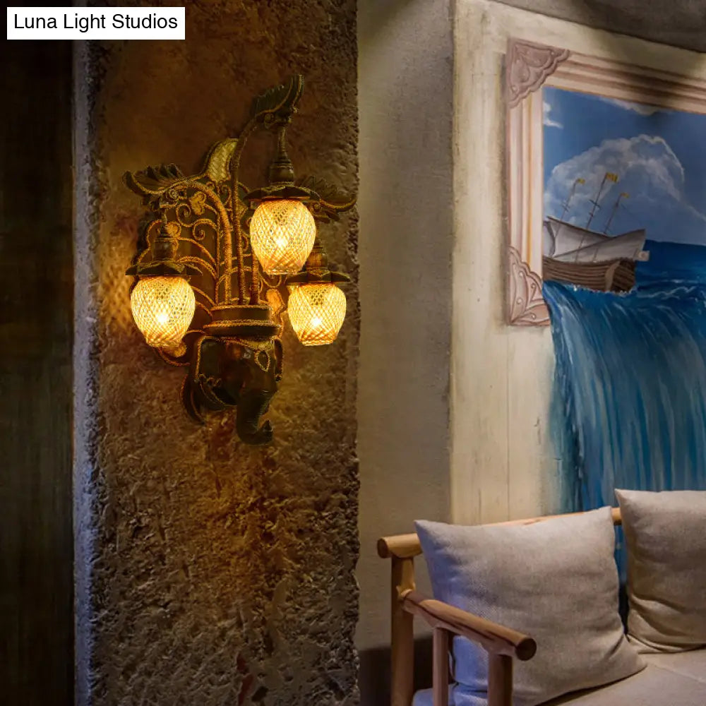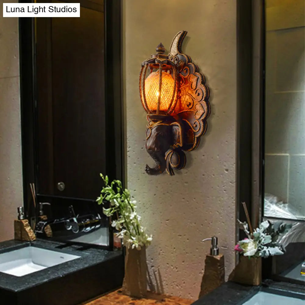 شمعدان جداري على شكل درج ريفي مع غطاء من الخيزران بلون البطيخ باللون البني - وحدة إضاءة جدارية