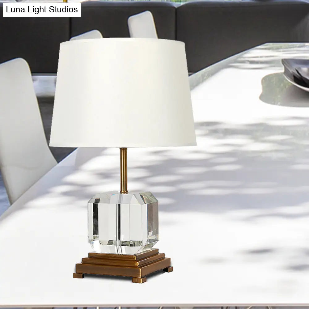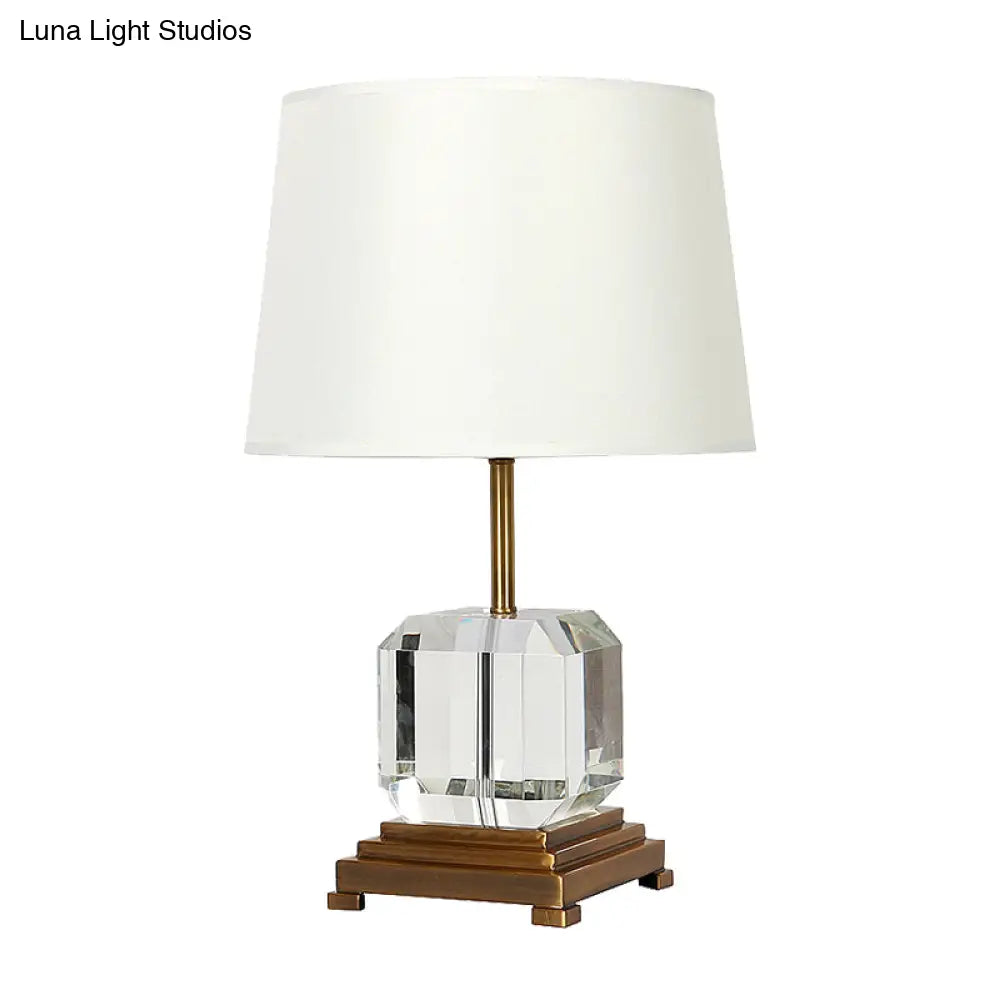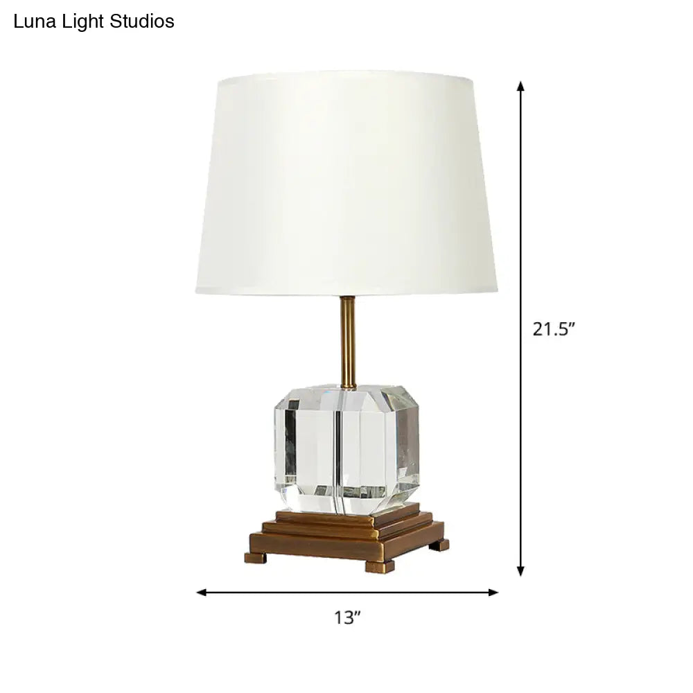 مصباح طاولة ليلية عصري أبيض برميلي - إضاءة طاولة جانبية من الكريستال K9 المشطوف مع قاعدة مربعة