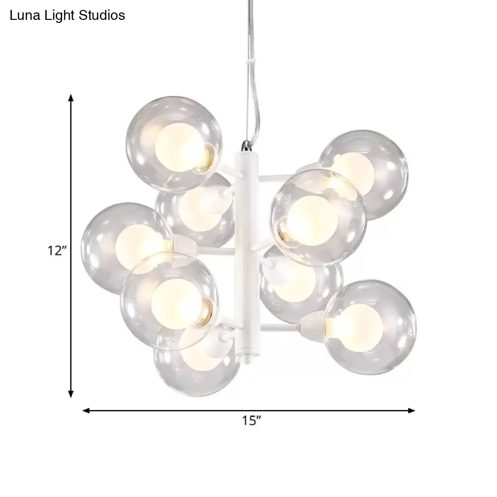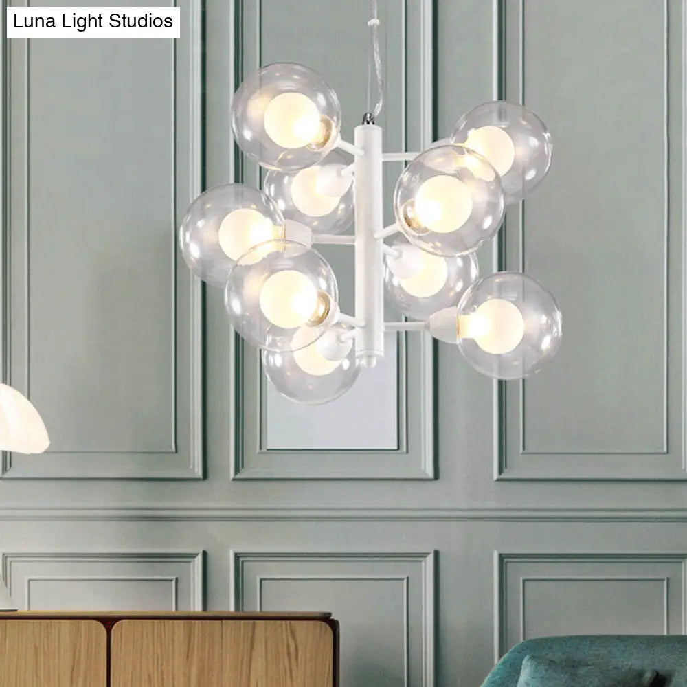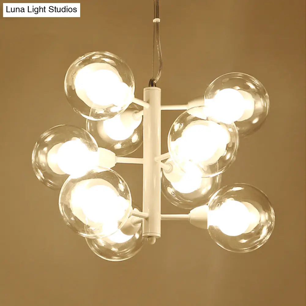 ثريا عصرية مزدوجة الفقاعات - بيضاء | 9 لمبات | قلادة زجاجية شفافة
