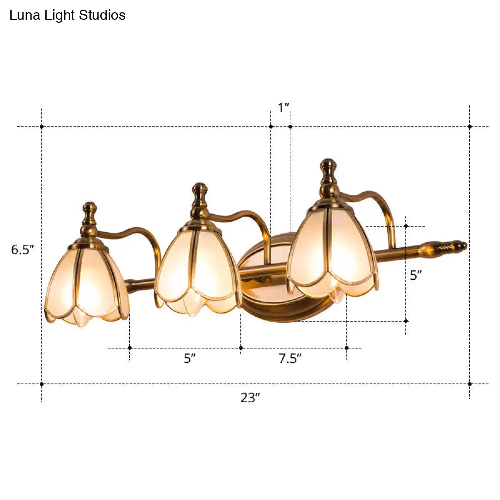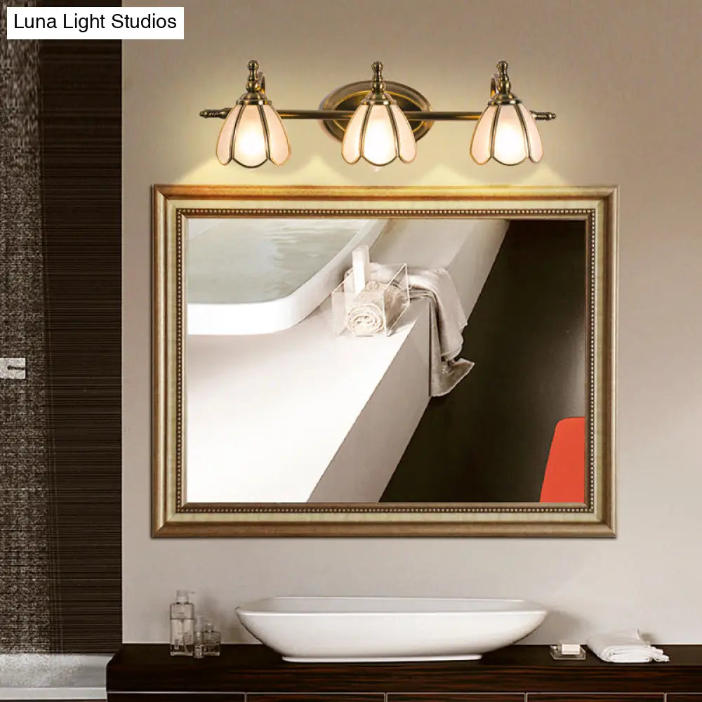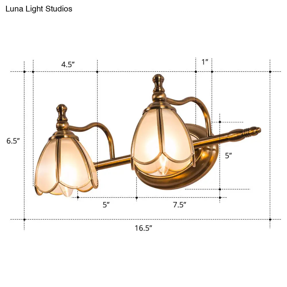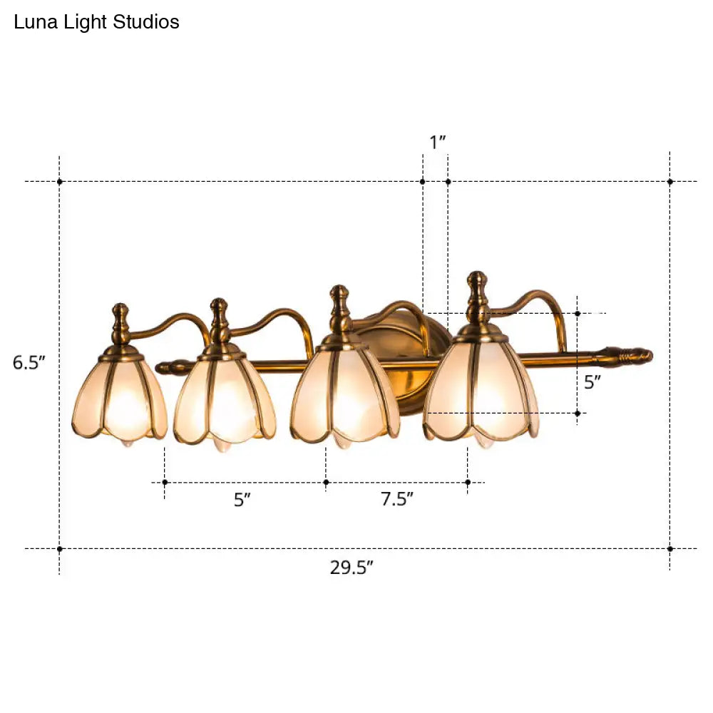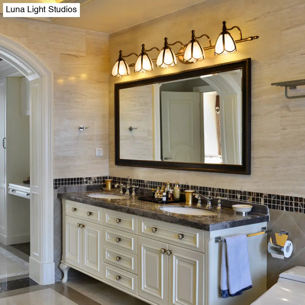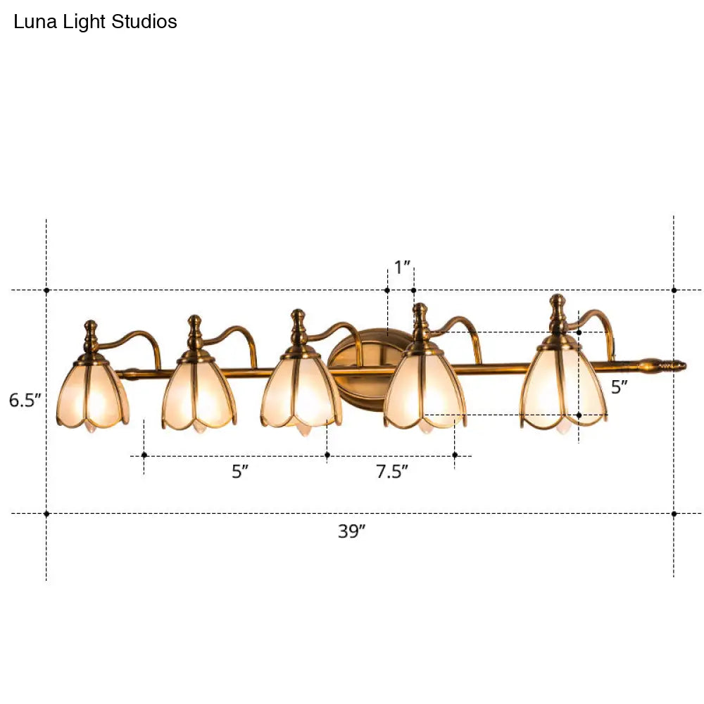 مصباح حائط برونزي أنيق من الزجاج الأبيض بتصميم صدفي لطاولة الحمام