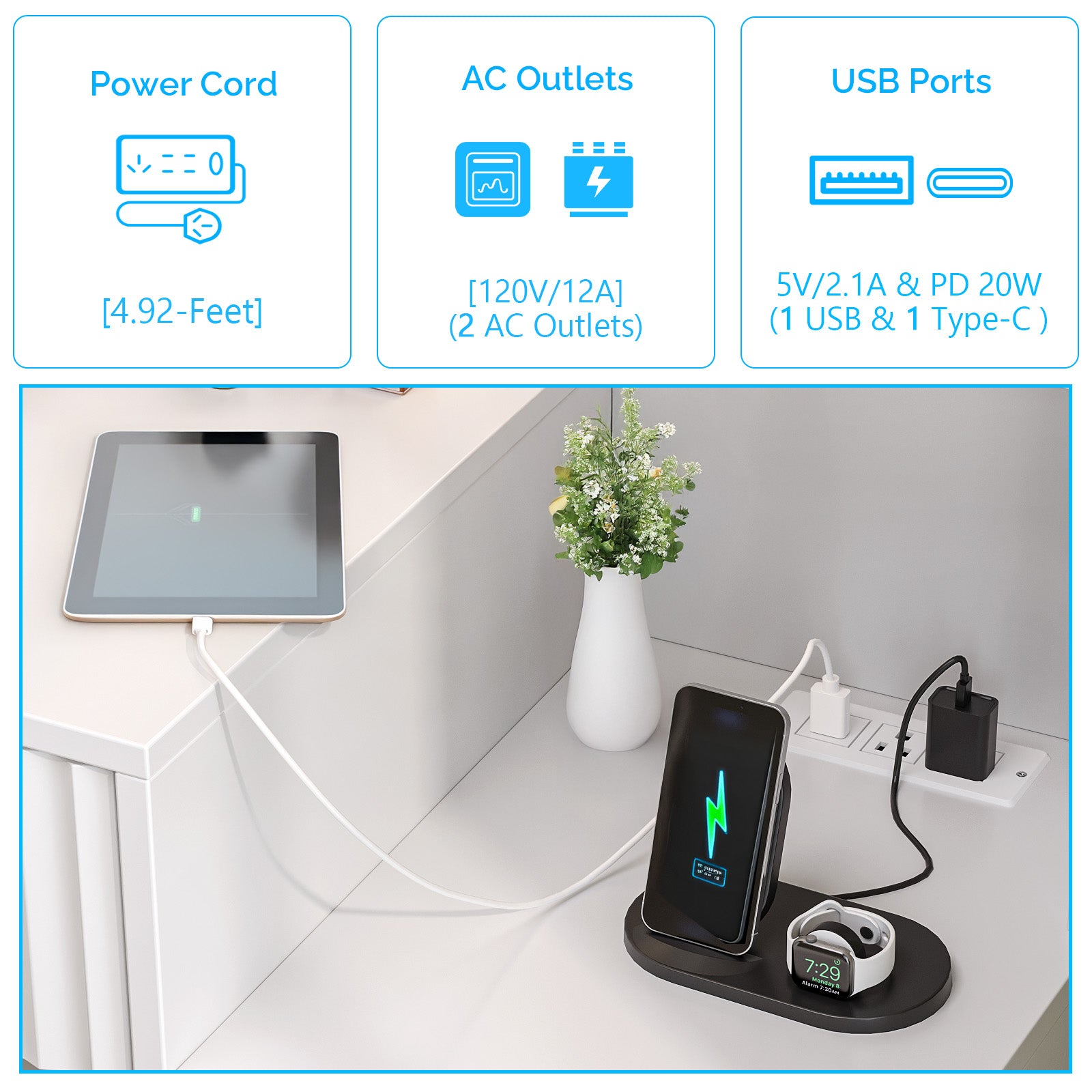 This vanity set understands modern beauty needs with its built-in power strip featuring multiple outlets and USB ports. The integrated electrical solution allows you to conveniently power and charge all your beauty devices simultaneously - from hair straighteners and curlers to electronic brushes and smartphones. The smart cable management system keeps wires organized and out of sight, maintaining the clean aesthetic while ensuring safety. The power strip includes overload protection and meets international safety standards, providing peace of mind while you prepare for your day or evening.