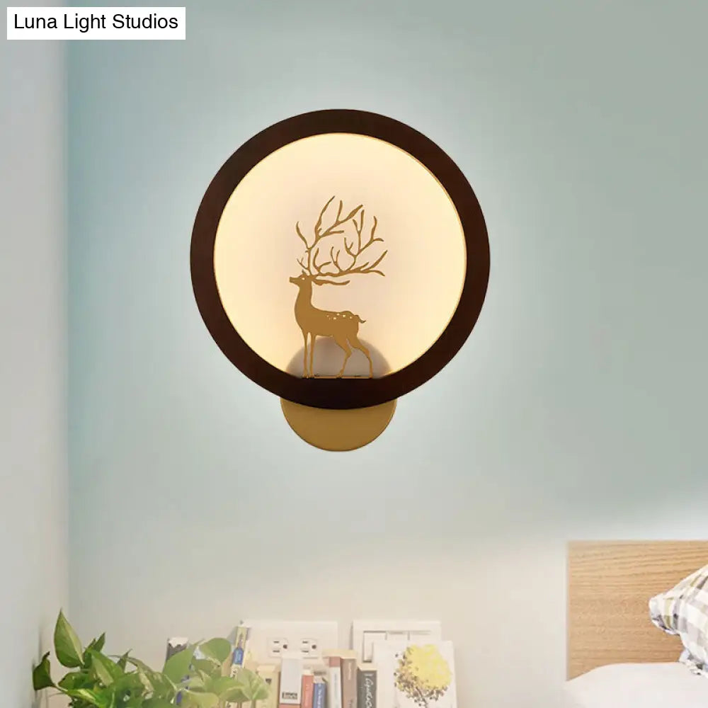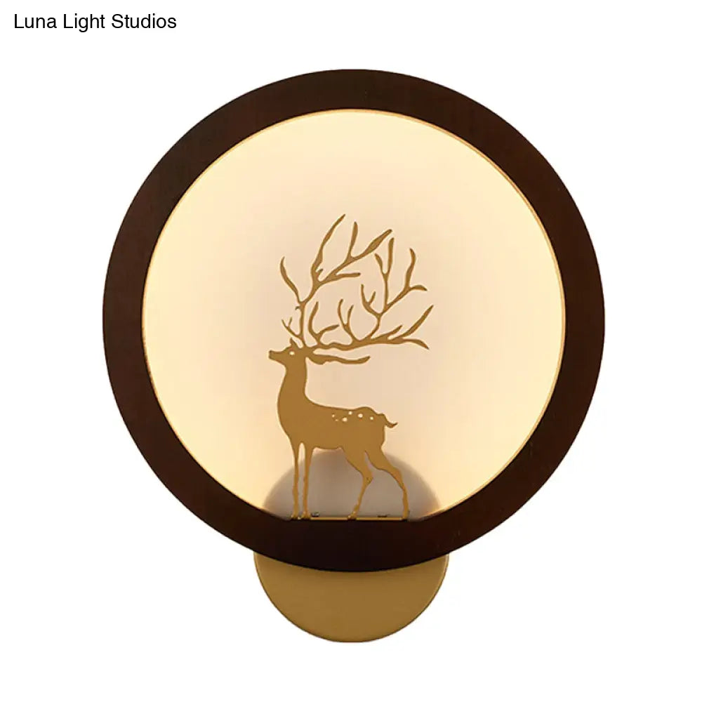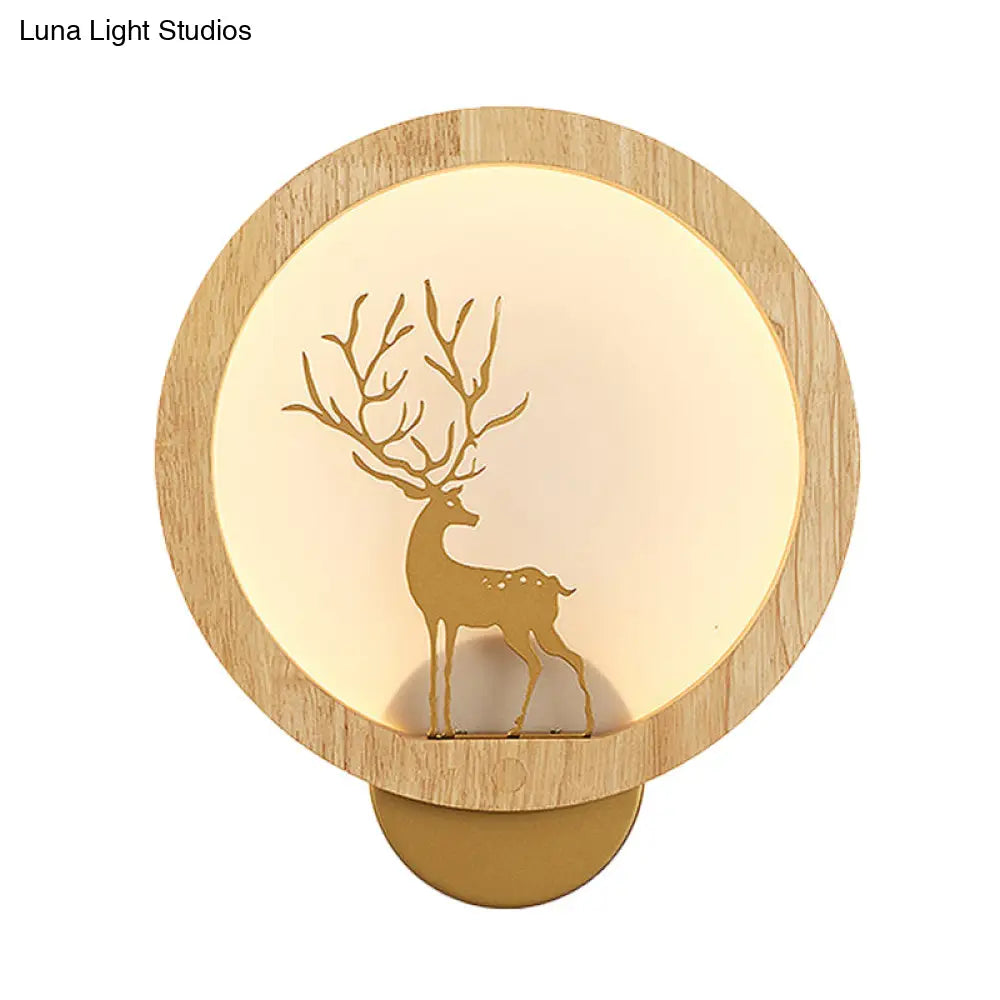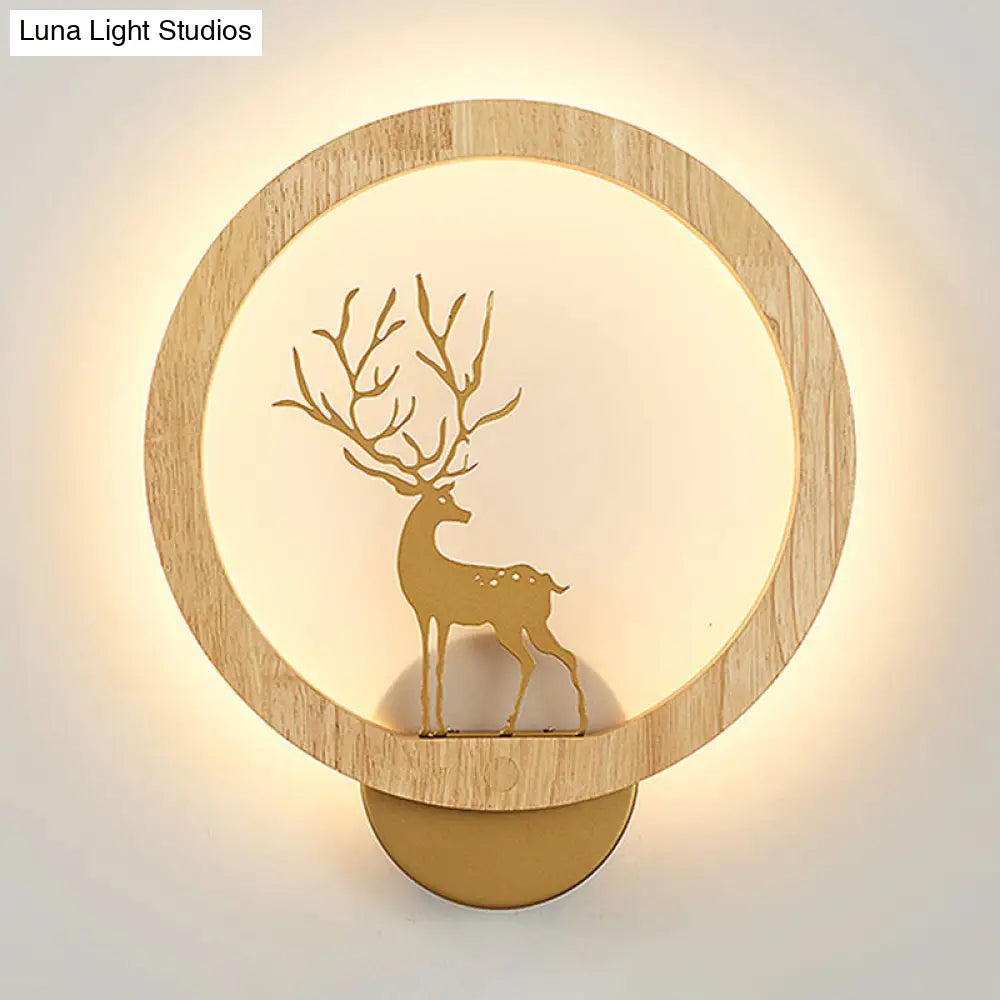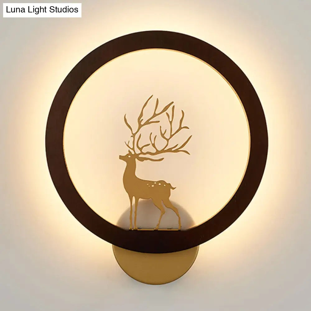 مصباح حائط LED عصري بحلقة هالة خشبية - أسود/بيج مع صورة ظلية لغزال سيكا