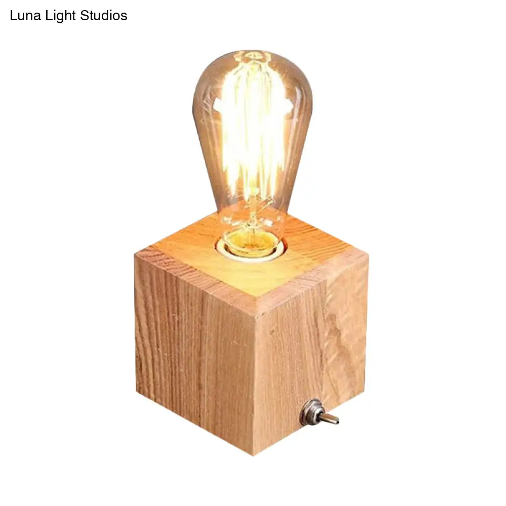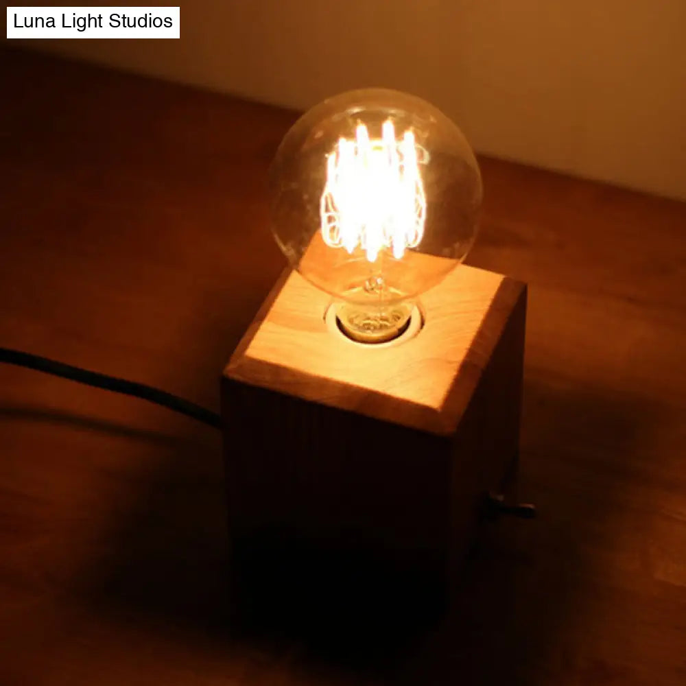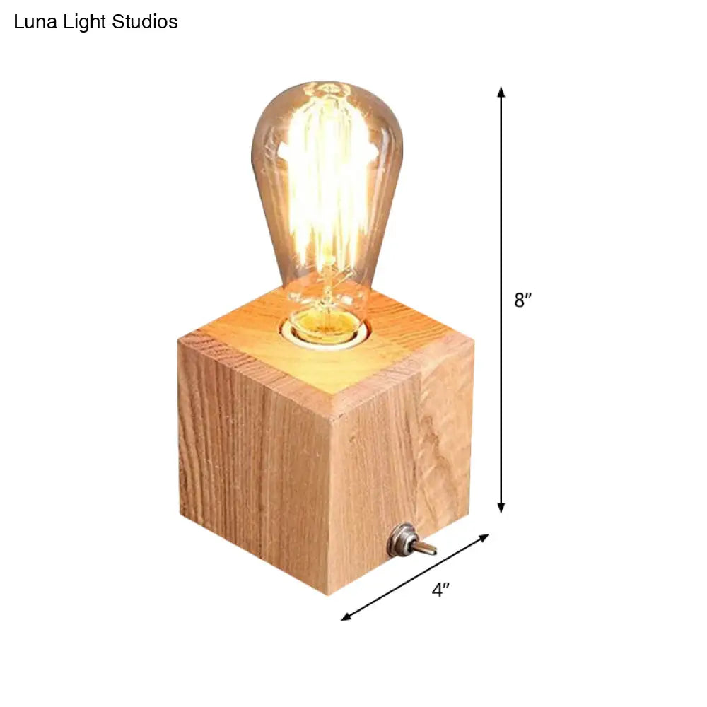 مصباح طاولة خشبي مربع معاصر - إضاءة مكتب صغيرة بمصباح واحد باللون البيج لغرفة المعيشة