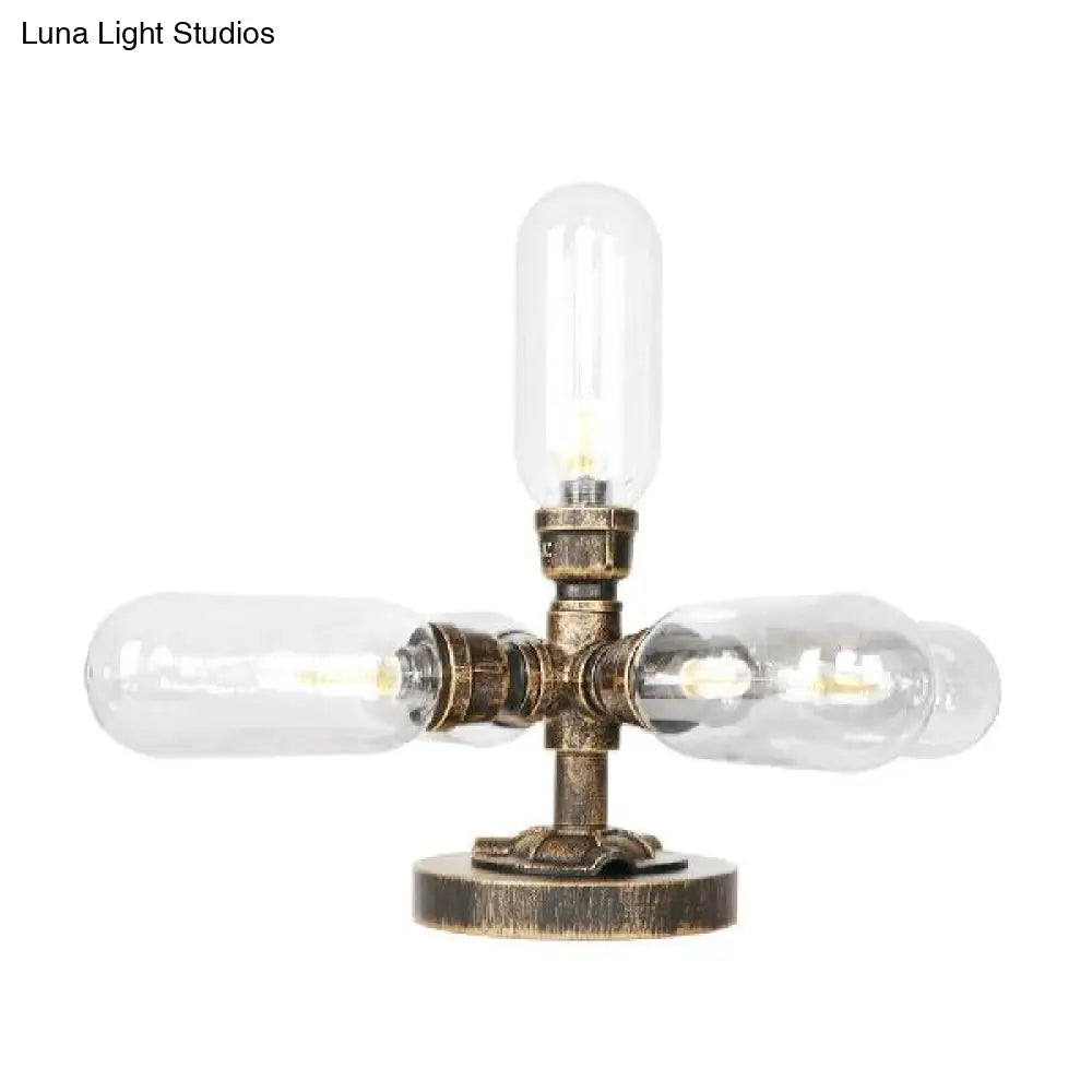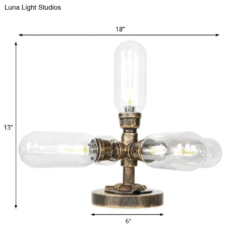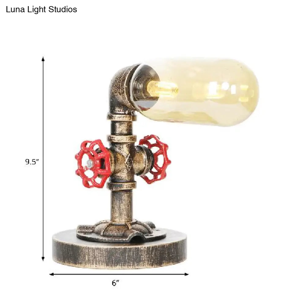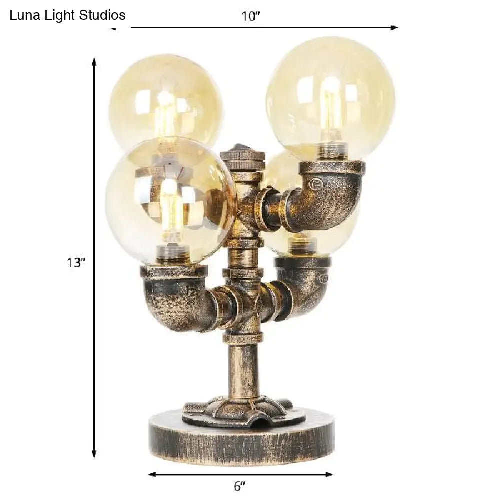 Lámpara de escritorio antigua de latón con forma de cápsula/globo - Cristal transparente/ámbar, ideal para la sala de estar