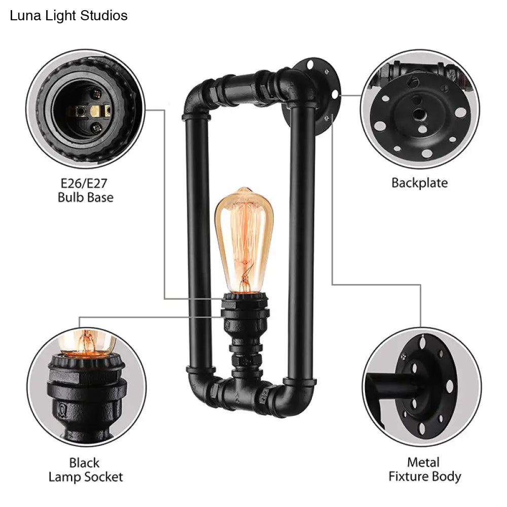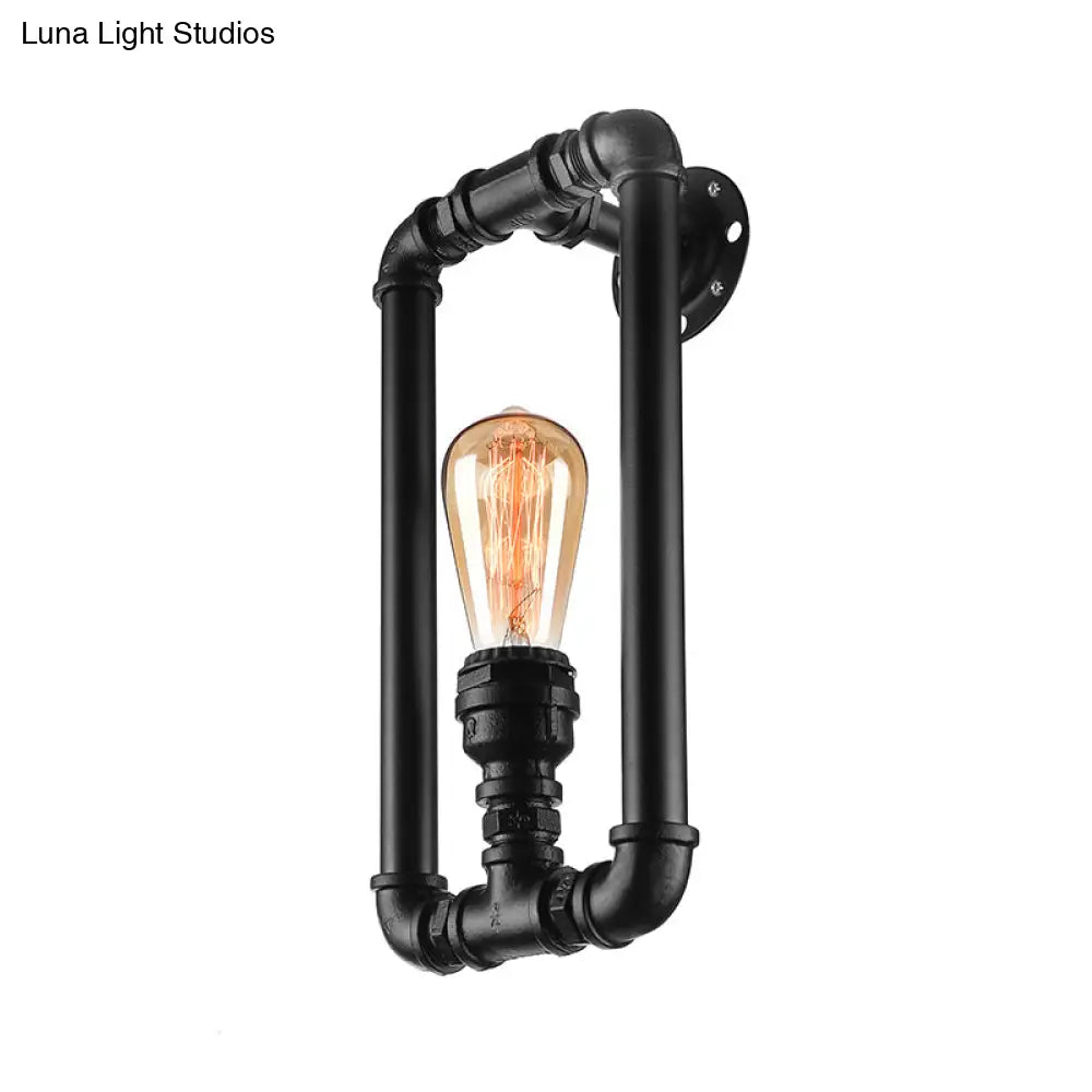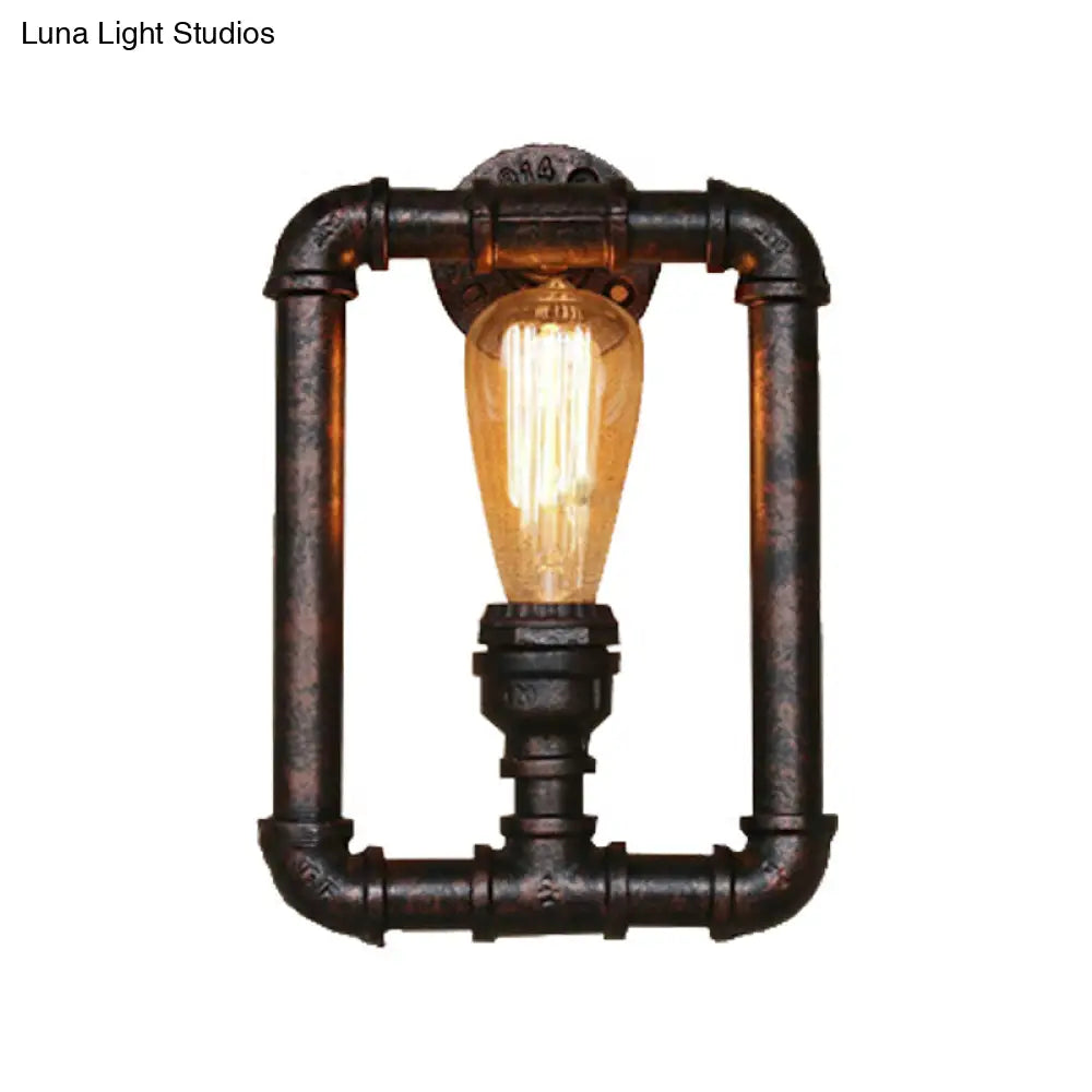 Lámpara de pared antigua de hierro - Elegante aplique rectangular de tubo negro/óxido para dormitorio
