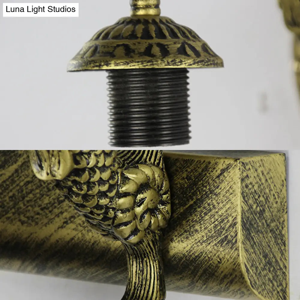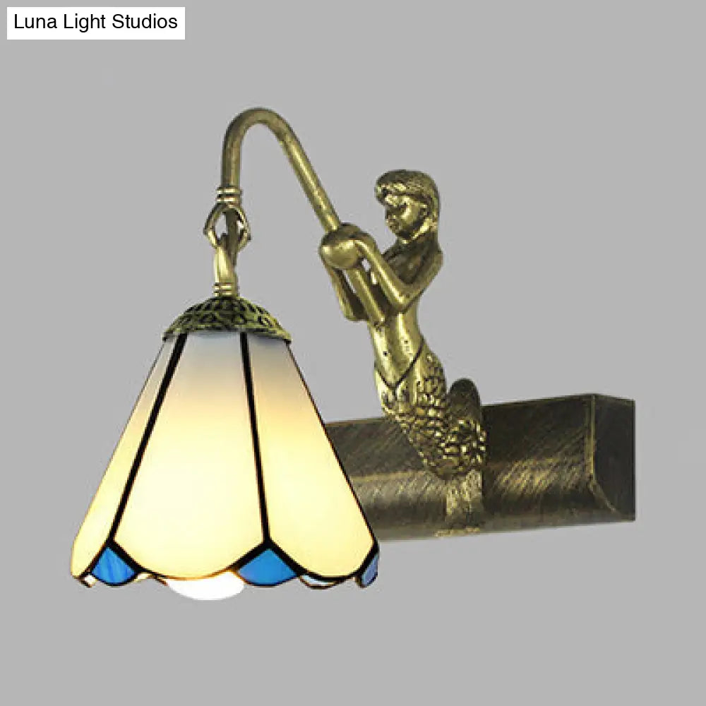 Aplique Tiffany de latón antiguo con pantalla de cristal cónica para pared de baño