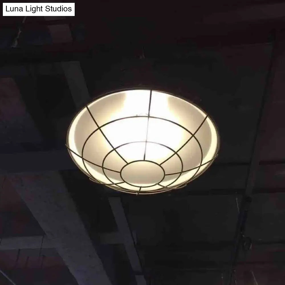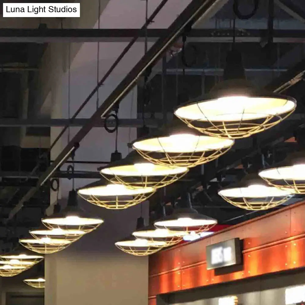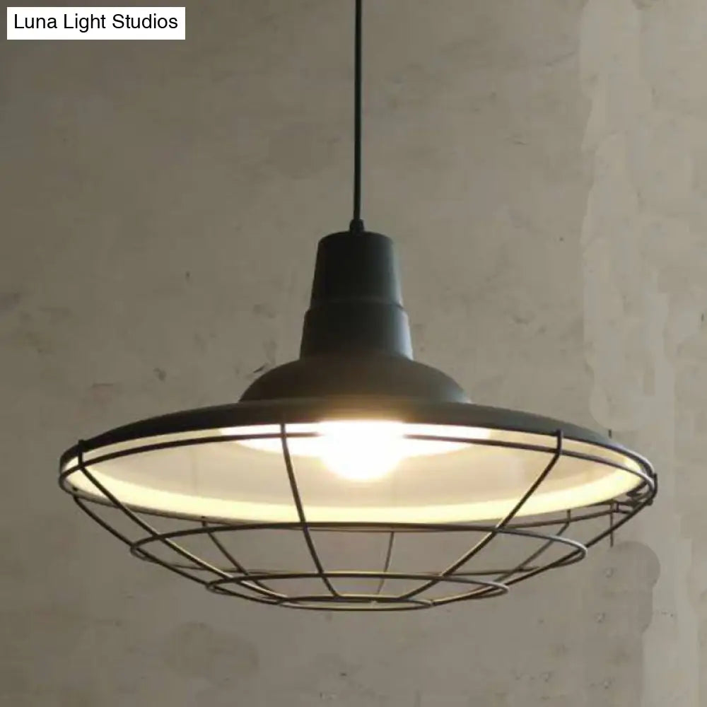 Lámpara colgante antigua con forma de tapa de olla de hierro negro y base enrejada - Ideal para restaurantes