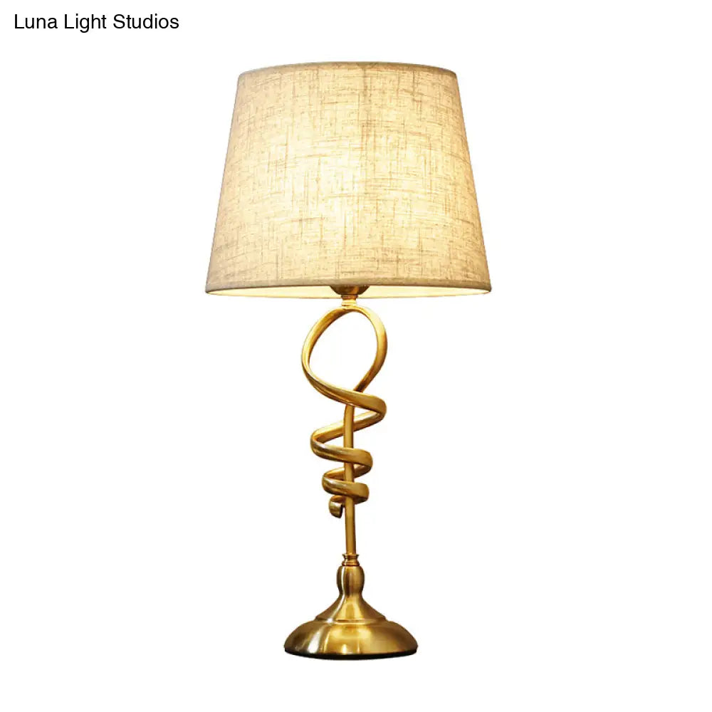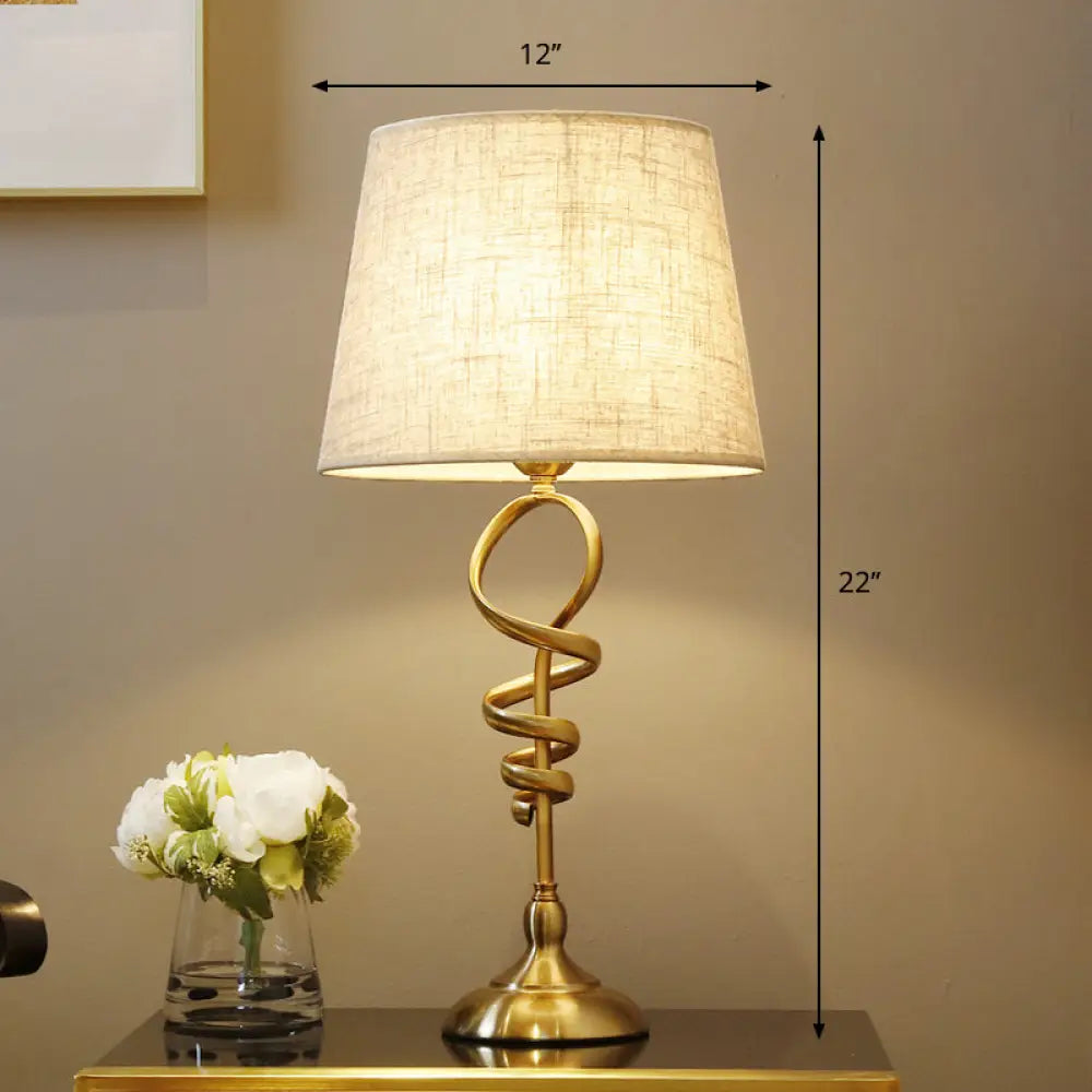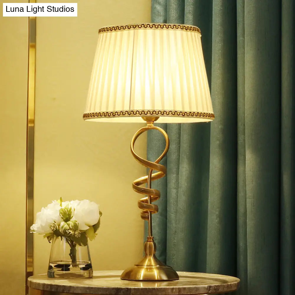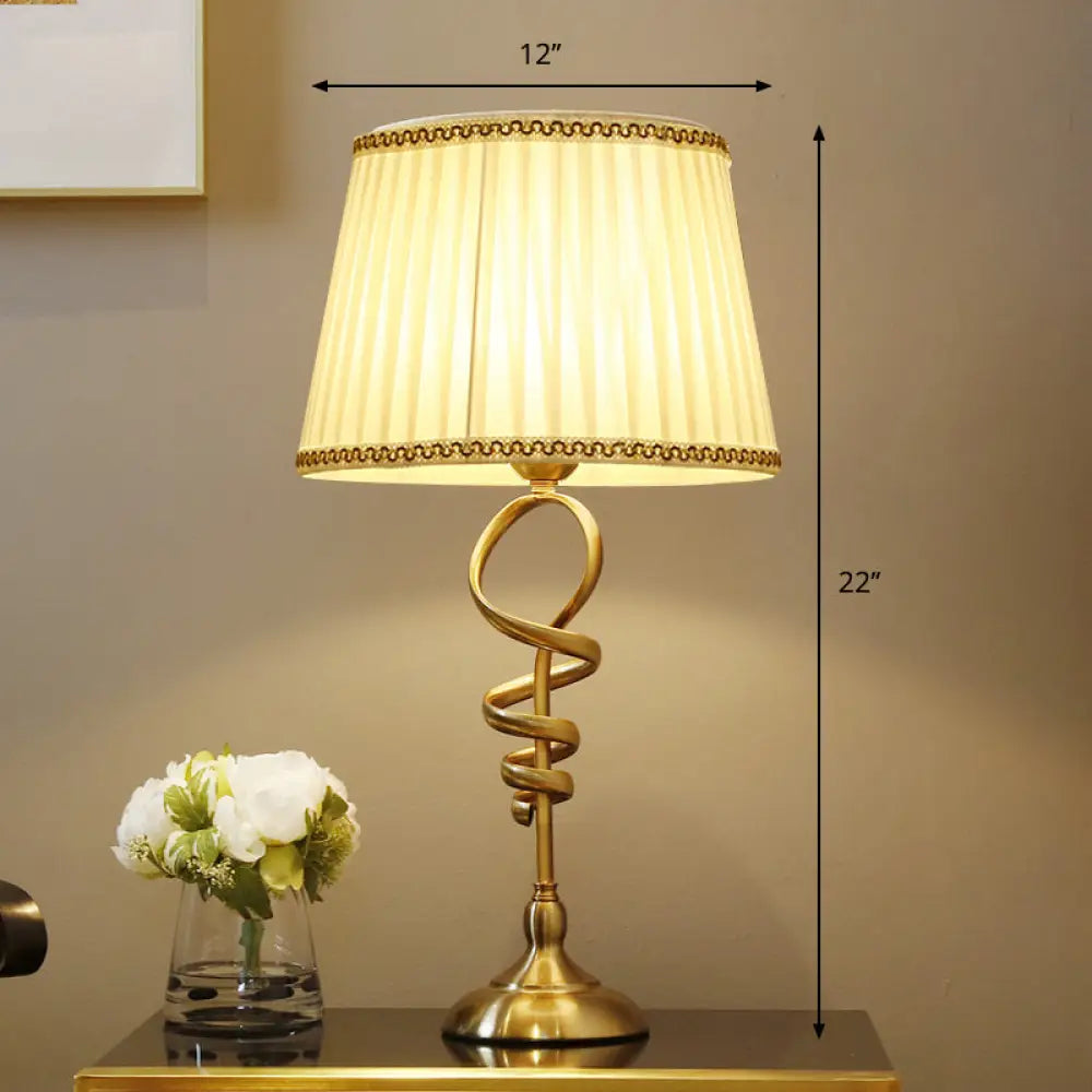 Lámpara de mesa de noche clásica en espiral metálica con pantalla de tela plisada - 1 cabezal
