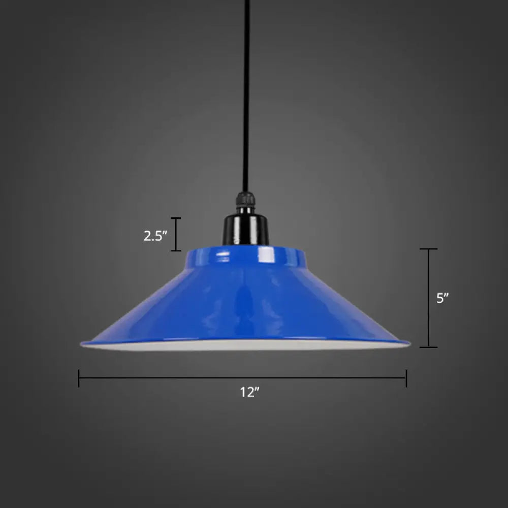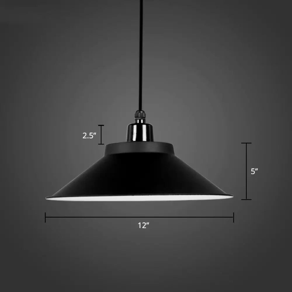 Lámpara colgante cónica de metal con borde enrollado - Lámpara de techo de 1 luz para decoración tipo loft
