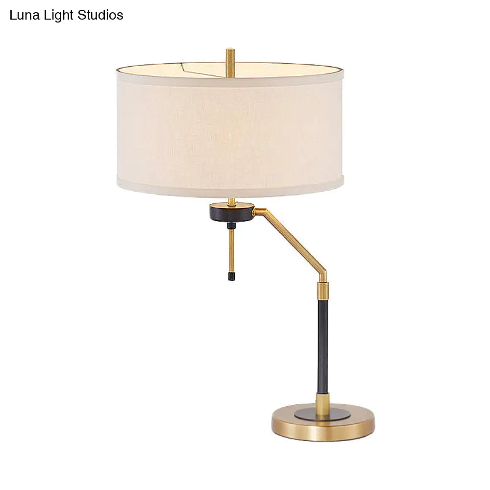Lámpara de escritorio de latón - Lámpara de lectura tradicional de tela con forma de tambor para dormitorio