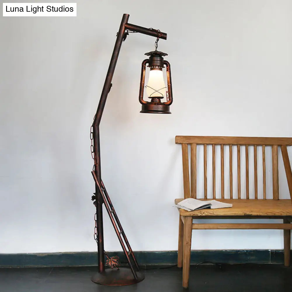 Lámpara de pie de lectura de estilo clásico con cristal de cobre - Lámpara de pie con forma de aceite, 1 luz