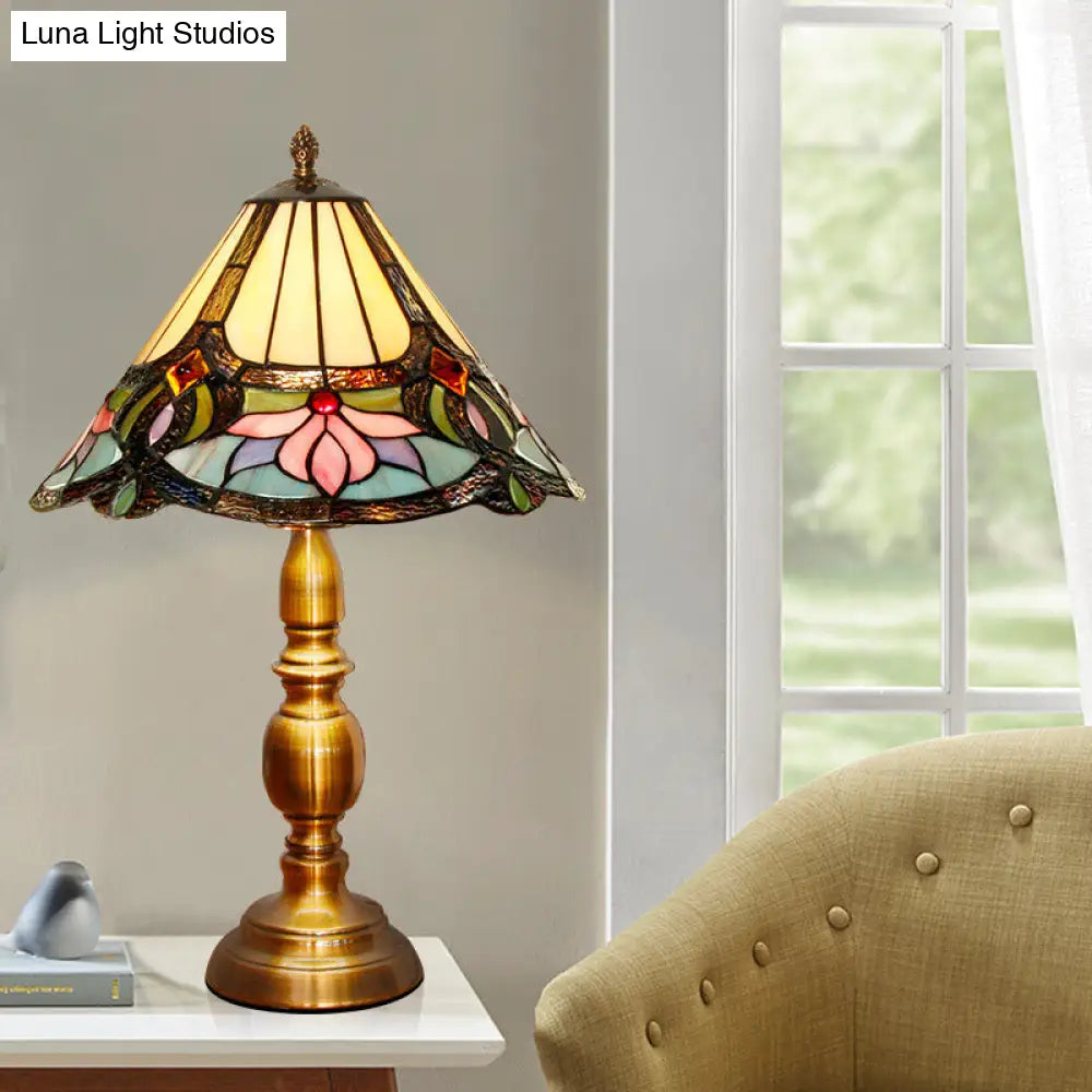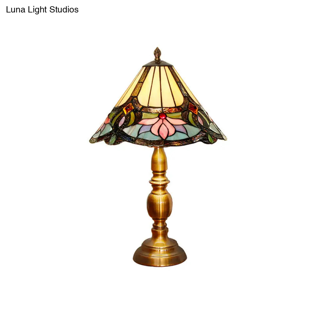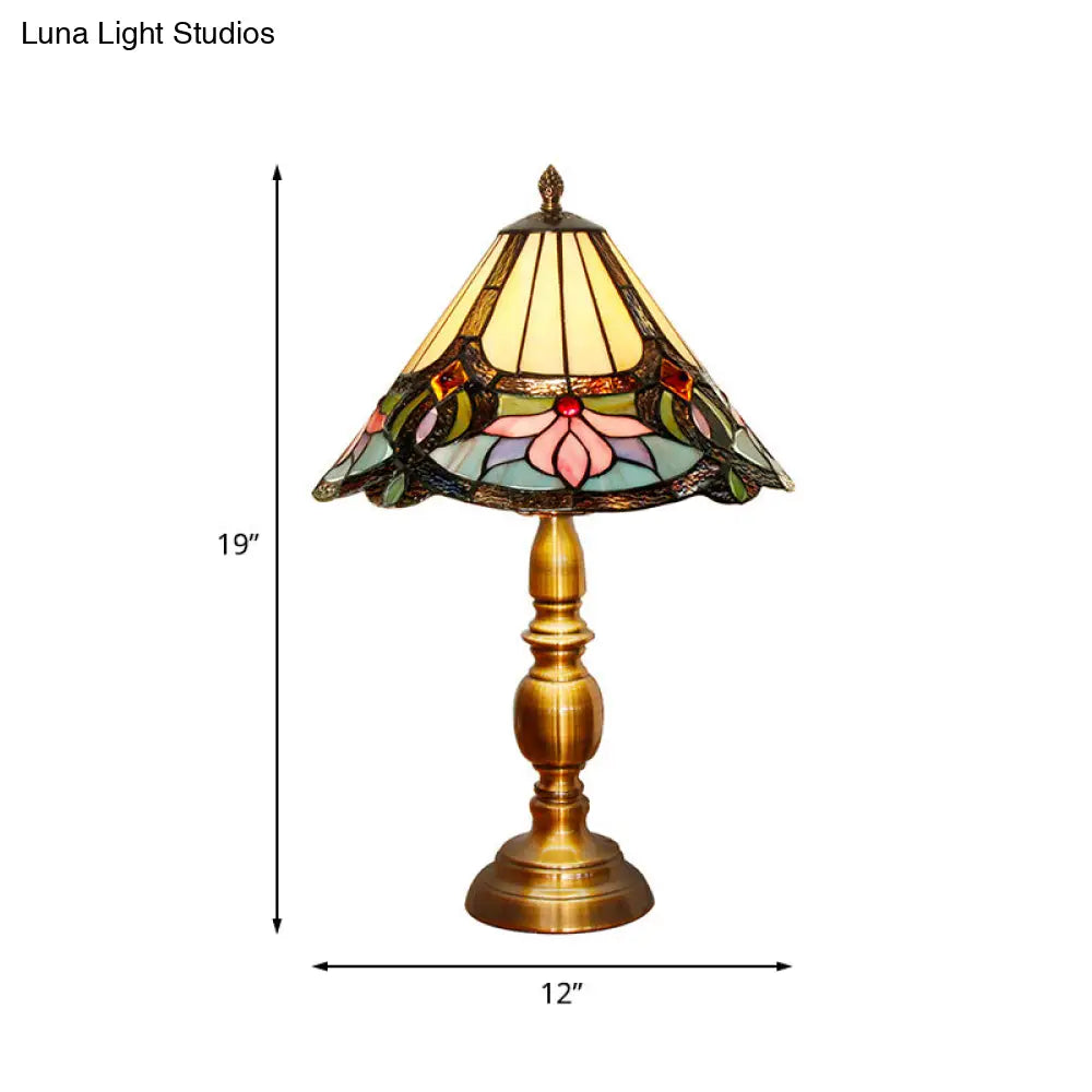 Lámpara de mesa Chort - Lámpara de mesa cónica barroca con forma de loto, de cristal tallado a mano - Latón cepillado