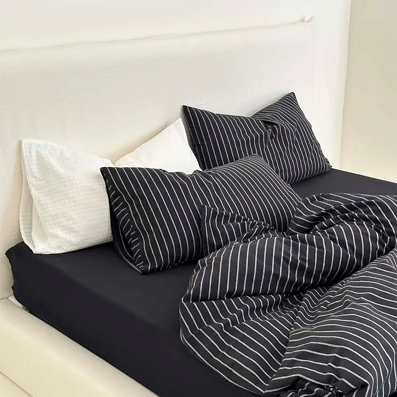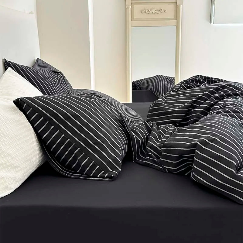 Juego de funda nórdica a rayas negras 100% algodón en varios tamaños de DecorBites™