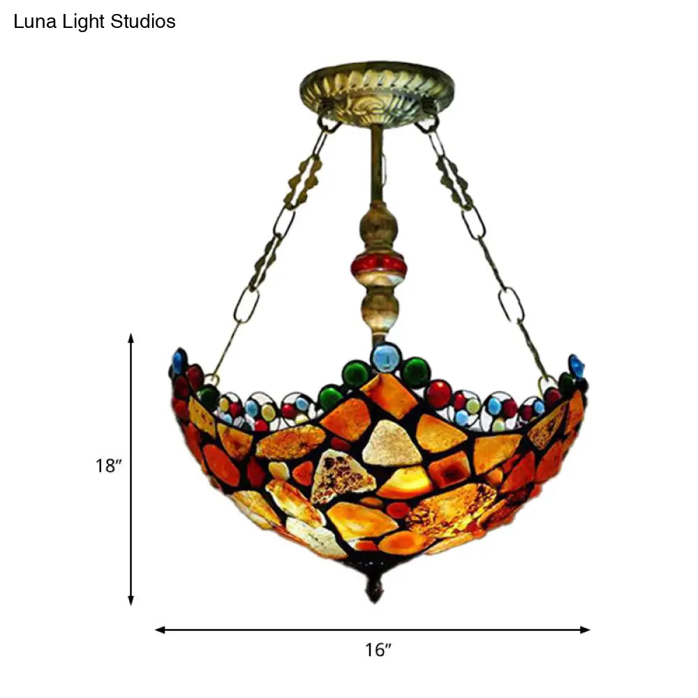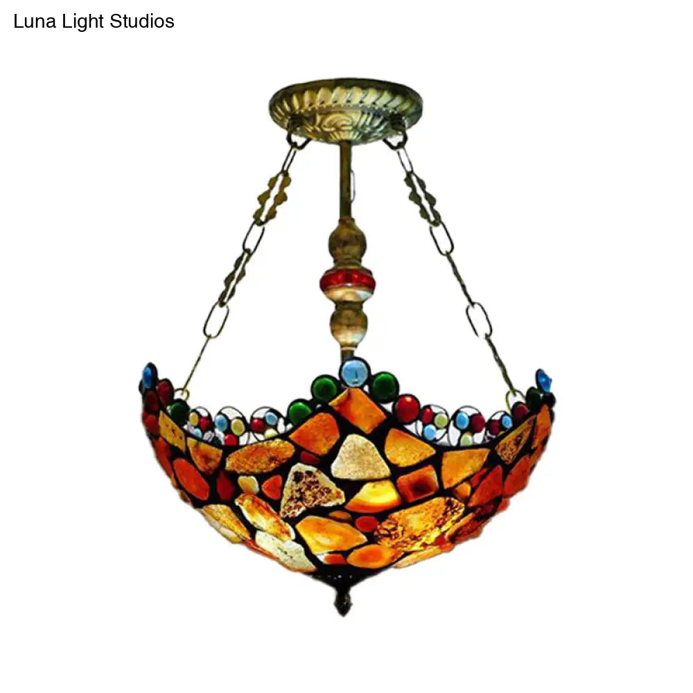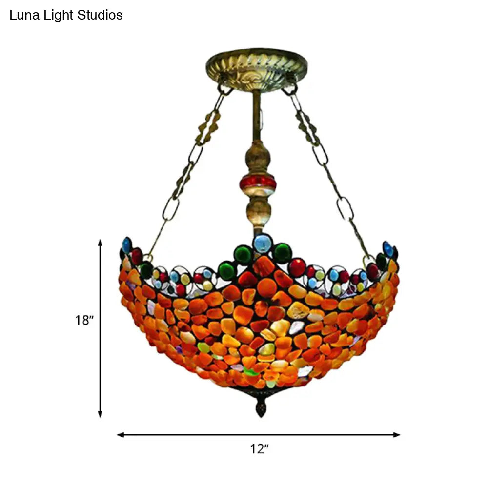Lámpara de araña de piedra festoneada - 2/3 luces, acabado en bronce antiguo