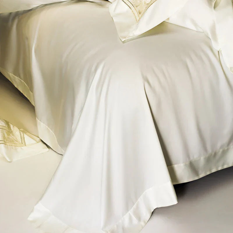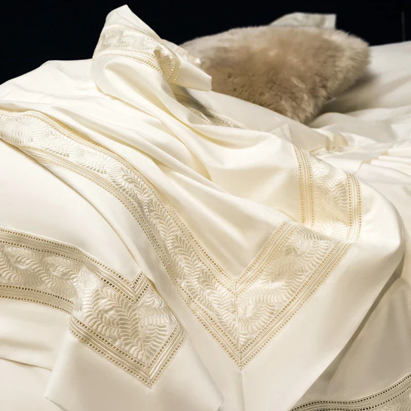 Juego de cama DecorBites™ de 1400 hilos de algodón egipcio con bordado de borde ancho y diseño calado.