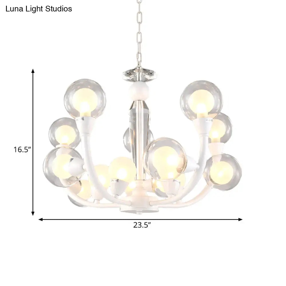 Lámpara de techo moderna White Orb para vestíbulo, con 15 o 24 luces y pantallas de cristal transparente y esmerilado.