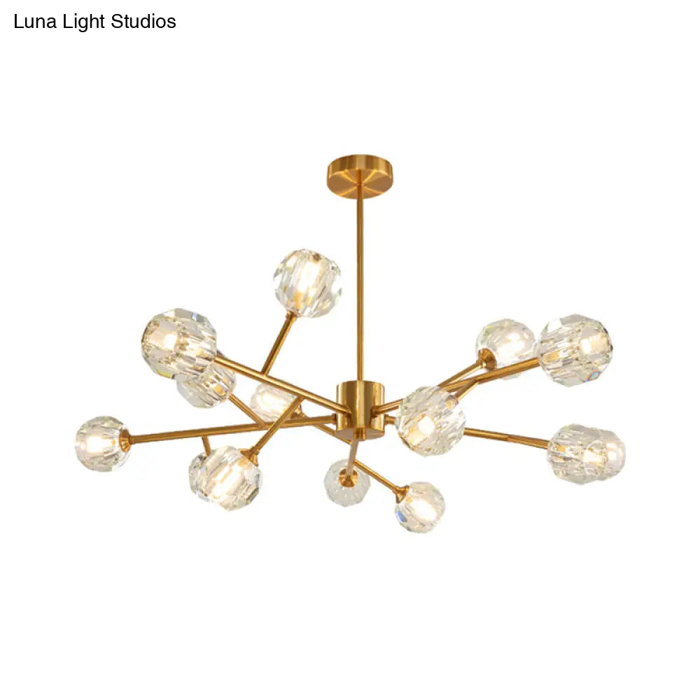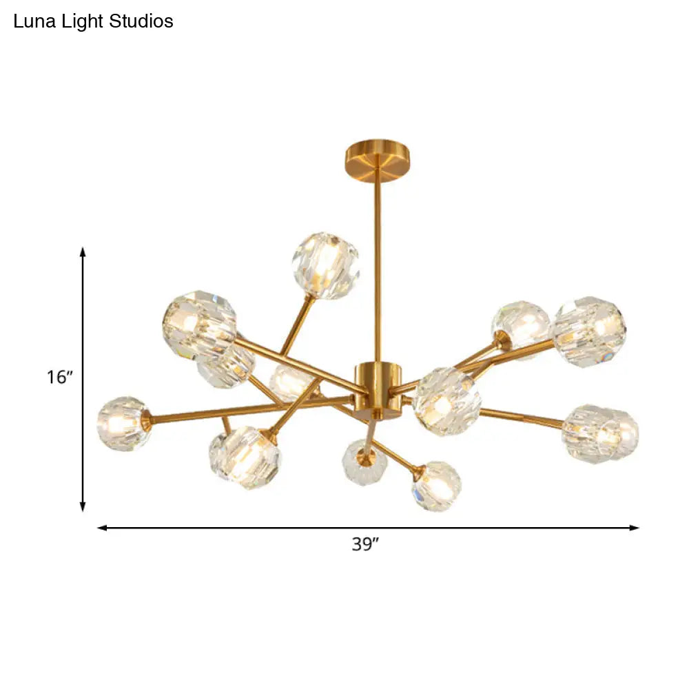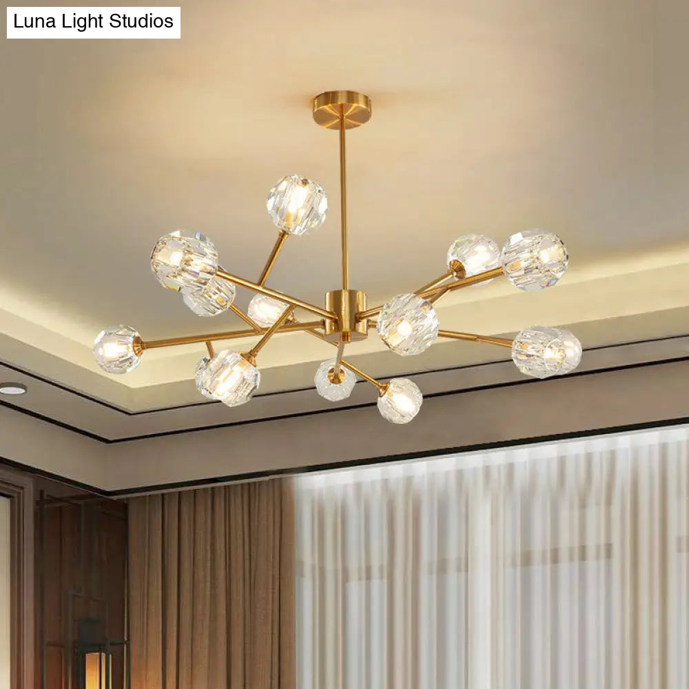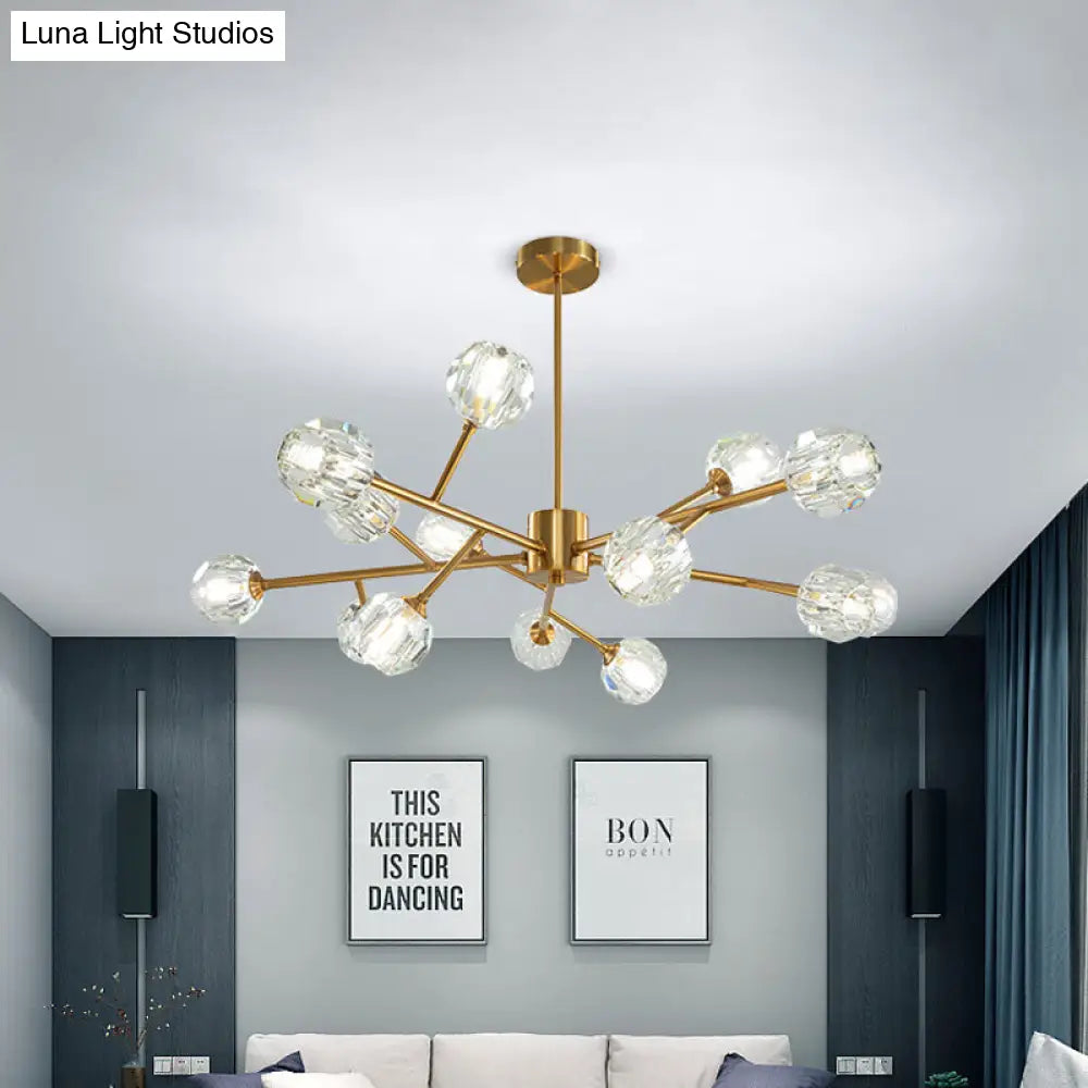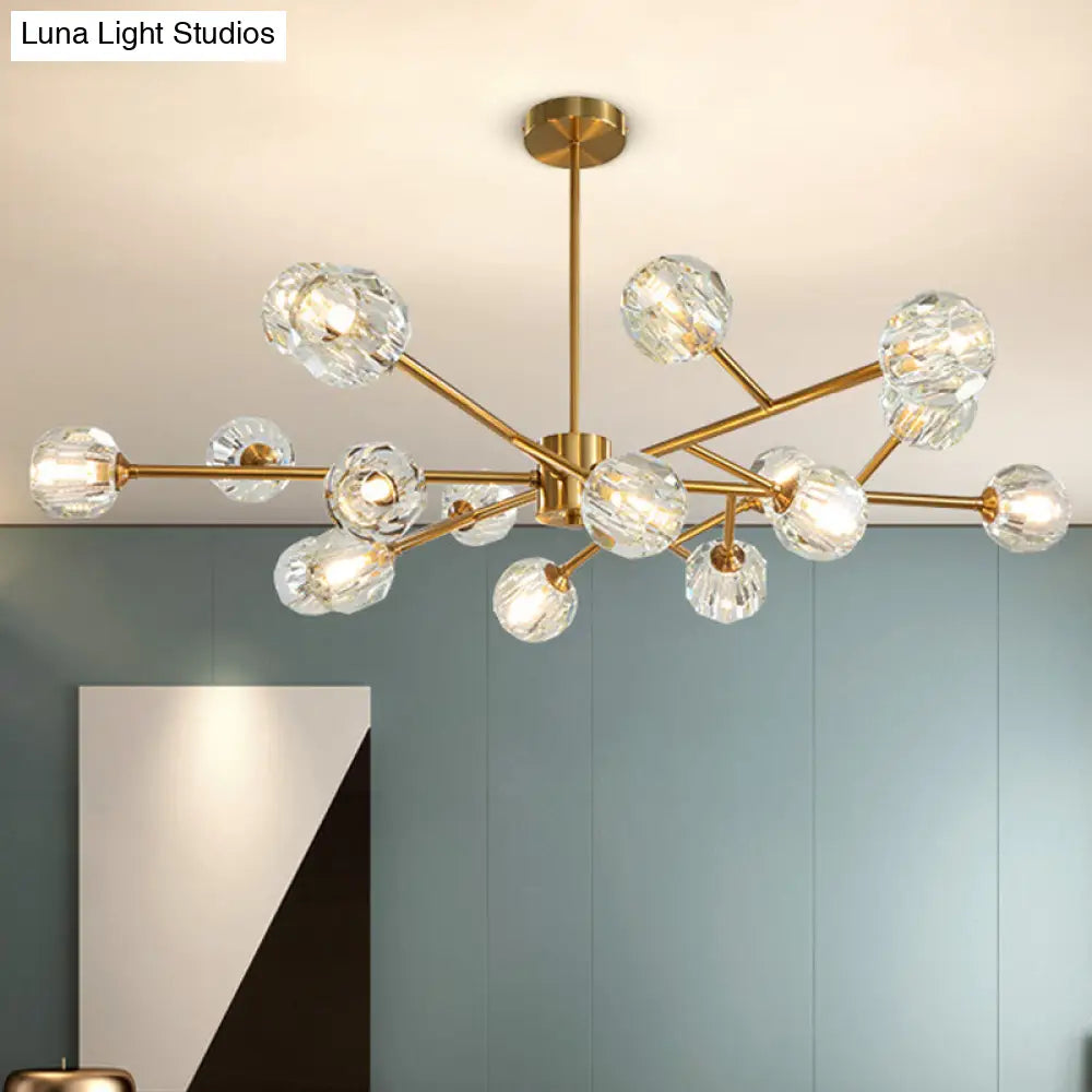 Lámpara de techo modernista dorada con pantalla de cristal - Lámpara colgante para salón con 15 bombillas