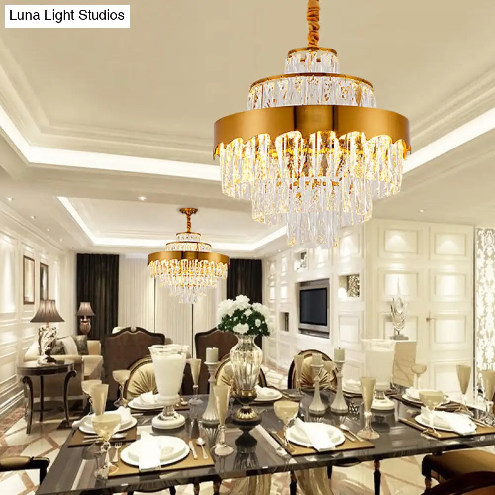 Lámpara de araña de cristal dorado de estilo vintage – Lámpara de techo en capas para comedor (17"/23")