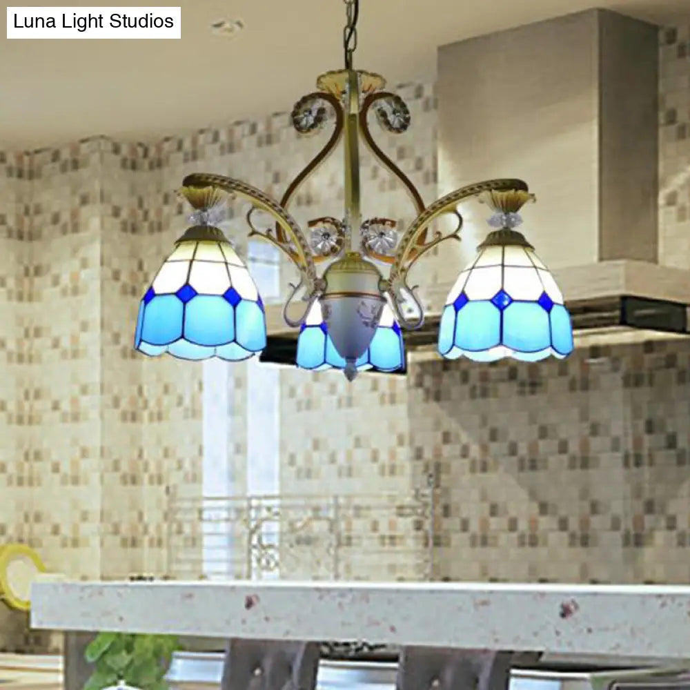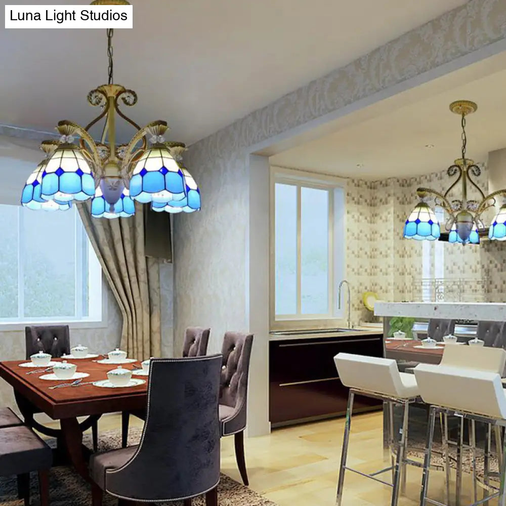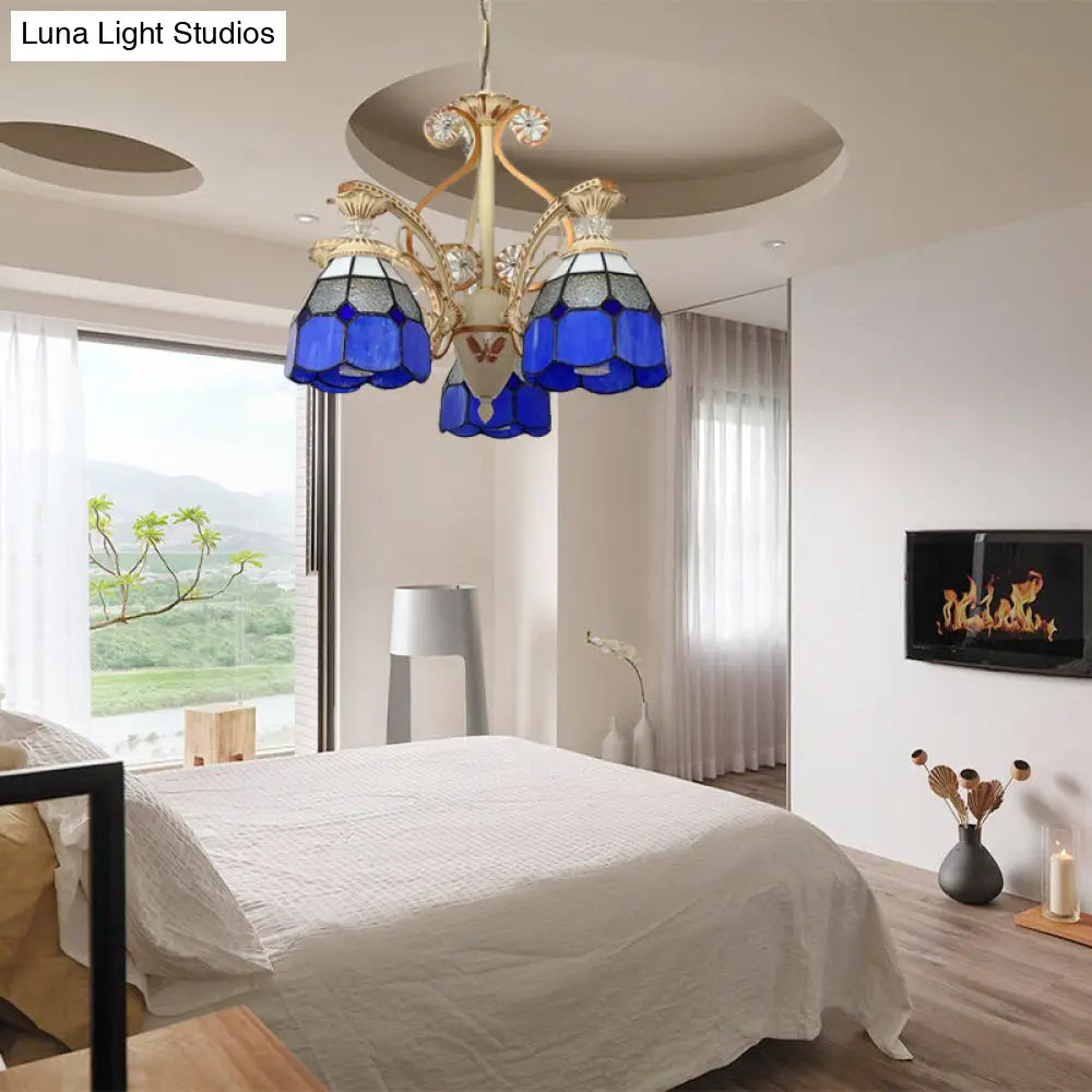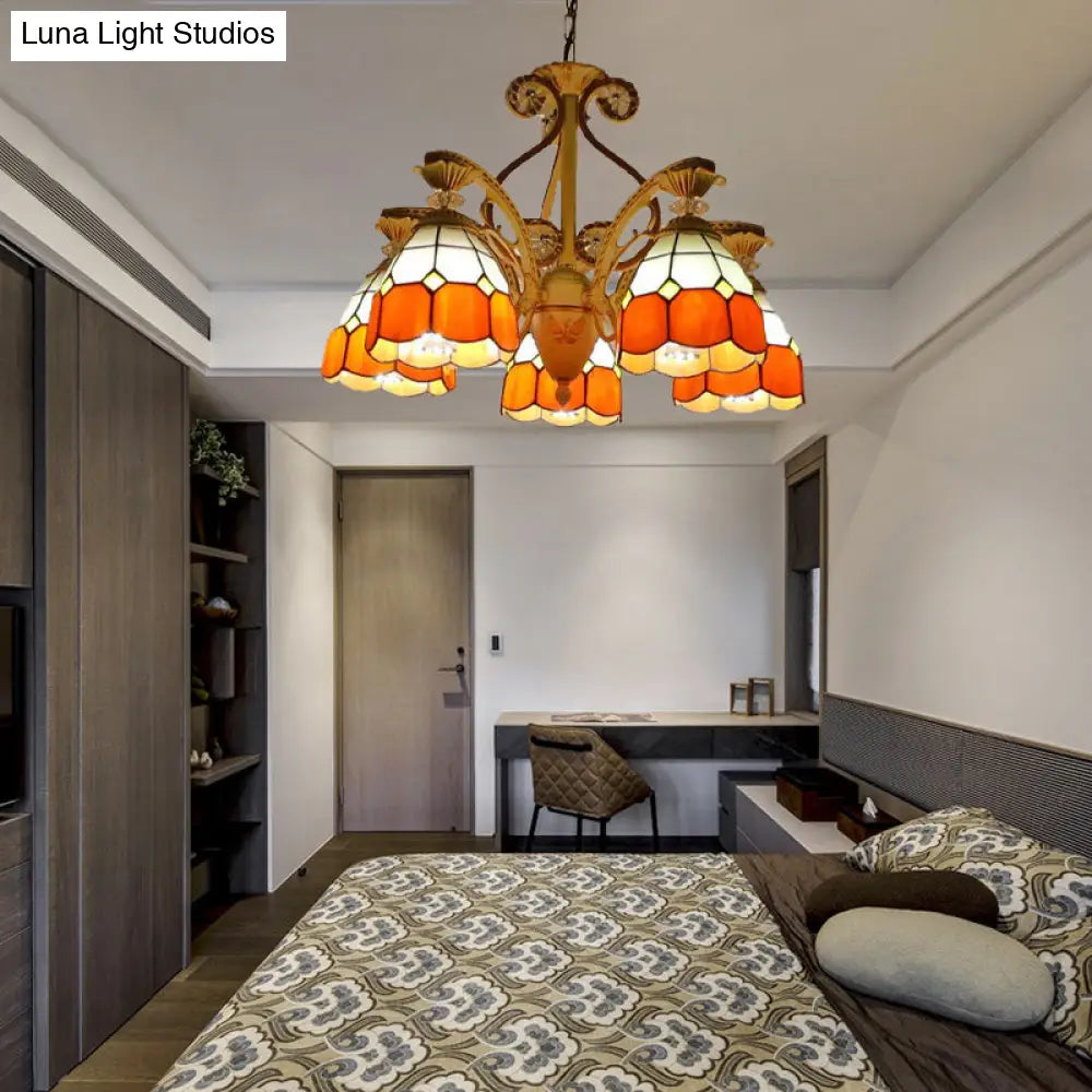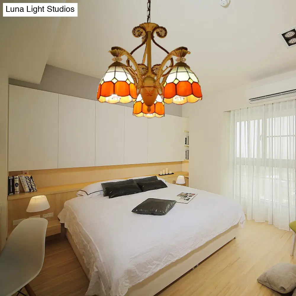 Lámpara de araña colgante de cristal tallado estilo barroco - 3/5 luces en naranja/azul - Brazo curvo - 19"/19.5"